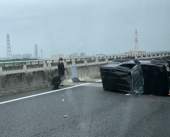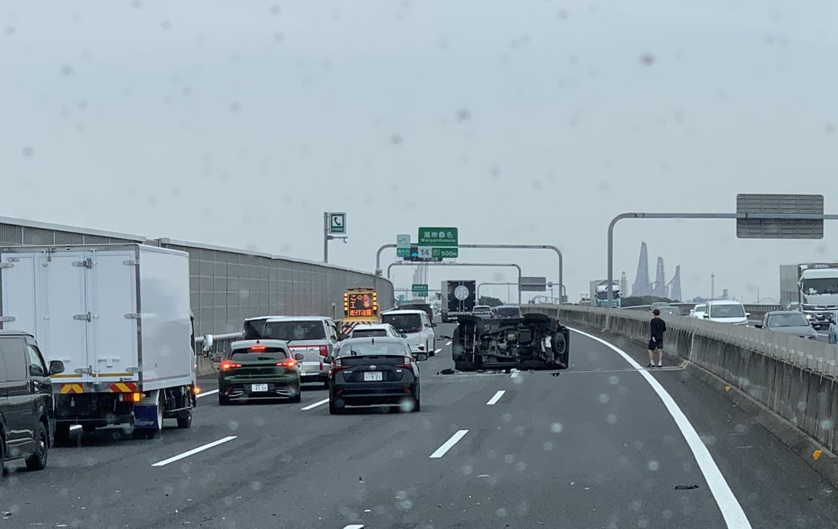 『伊勢湾岸自動車道でえげつない横転したての車おってうおお…ってなった』