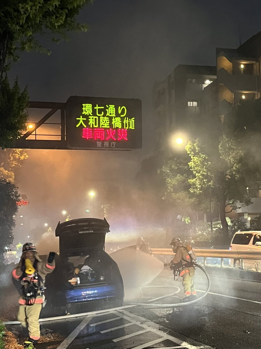環七でプリウスが炎上。十八番でメシ食ってたらドカーン!て爆発しました。運転手さんは無事&冷静でよかった。 pic.twitter.com/YTHOSzE9ZQ