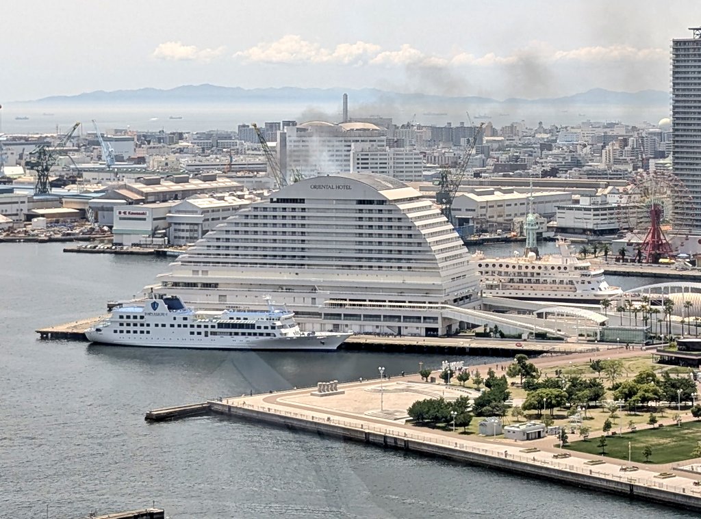 【火事情報】兵庫県神戸市中央区波止場町 神戸メリケンパークオリエンタルホテルから黒煙あがる火災 消防車23台出動5月28日 #兵庫 #神戸 #火災