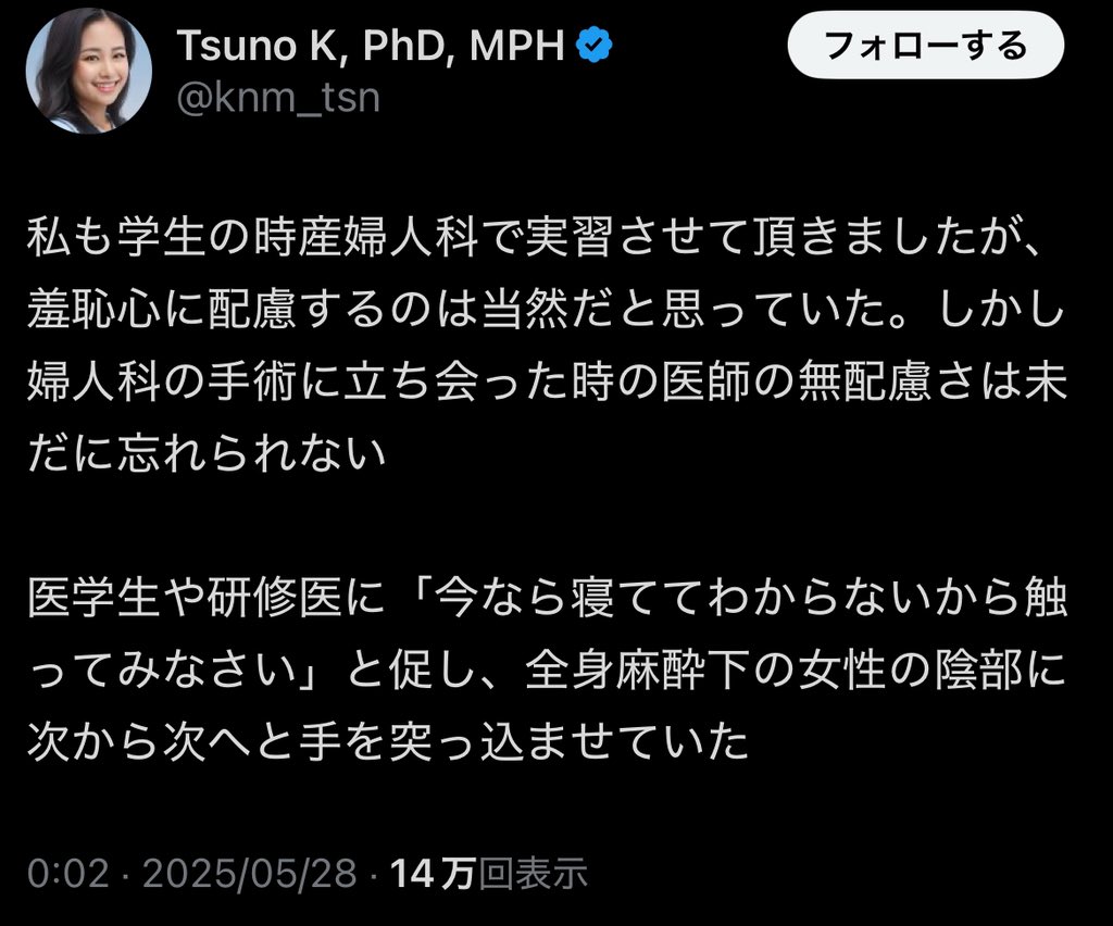 【速報】X民さん、実名アカウントで産婦人科実習の経験を告発 ←とんでもない“真実”が明らかになる 2025/5/29 速報 1: — (@heart2vascular) document.write(” + ”); 関連記事 【悲報】X民さん、とんでもねぇライン超えのポストを発見してしまう【HotTweets】 【画像】X民、嘘松が一線を超えてしまう ←これ投稿者よりもリプ欄の方がヤバいぞwwwwww 【画像】X民「大阪万博がコナンの映画出て来たらすぐ爆破されそう」→結果wwww 【悲報】X民「学生アルバイト、無能すぎる」 ← 7万いいね 【悲報】X民「これって開示請求案件になりますか?」 → document.write(” + ”); 続きを読む ——— Source: アルファルファモザイク 【速報】X民さん、実名アカウントで産婦人科実習の経験を告発 ←とんでもない“真実”が明らかになる