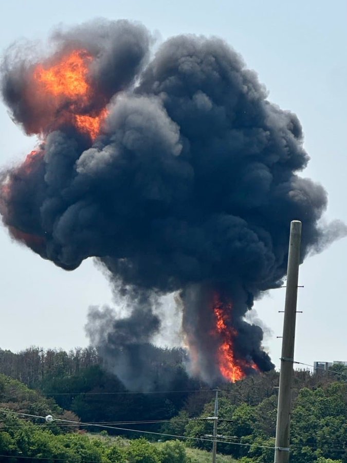 【現場の状況】#韓国 韓国南東部 浦項地区で軍用機 対潜哨戒機が墜落事故 現場周辺で黒煙があがっている 4人搭乗5月29日 #飛行機 #航空機