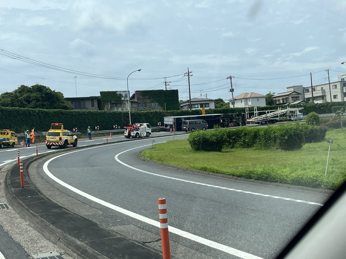 千葉北インターでトラックひっくり返ってた。笑 pic.twitter.com/erRKdaQyGU
