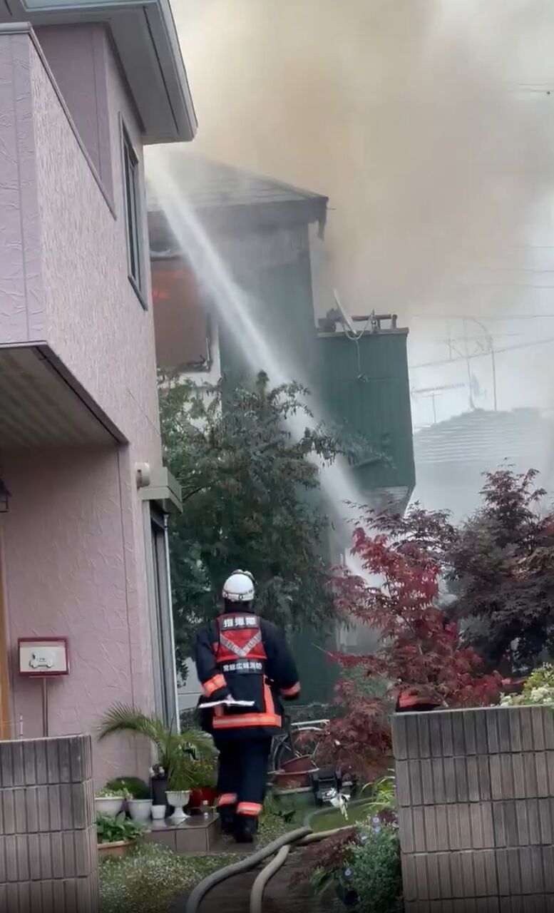 陽光台3丁目付近で火災発生。消防隊が懸命な消化活動中。 pic.twitter.com/EnIAa6sDKN
