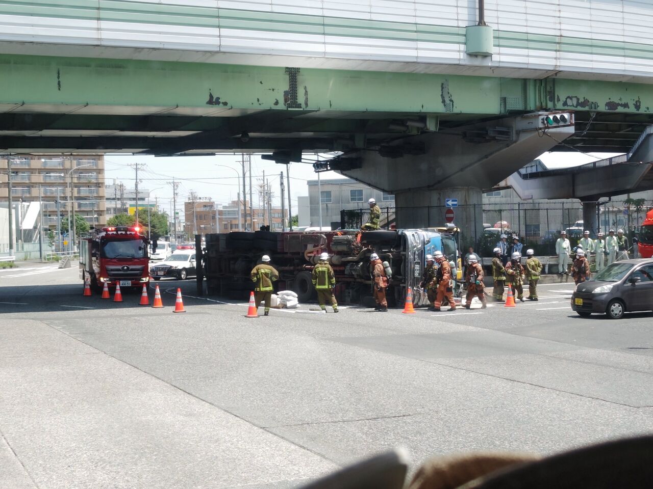 トラック横転してます』
