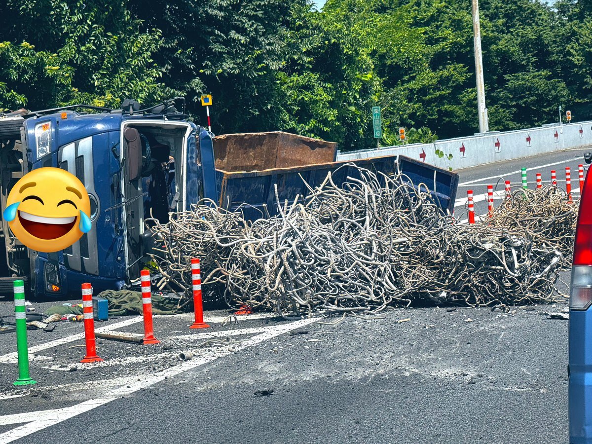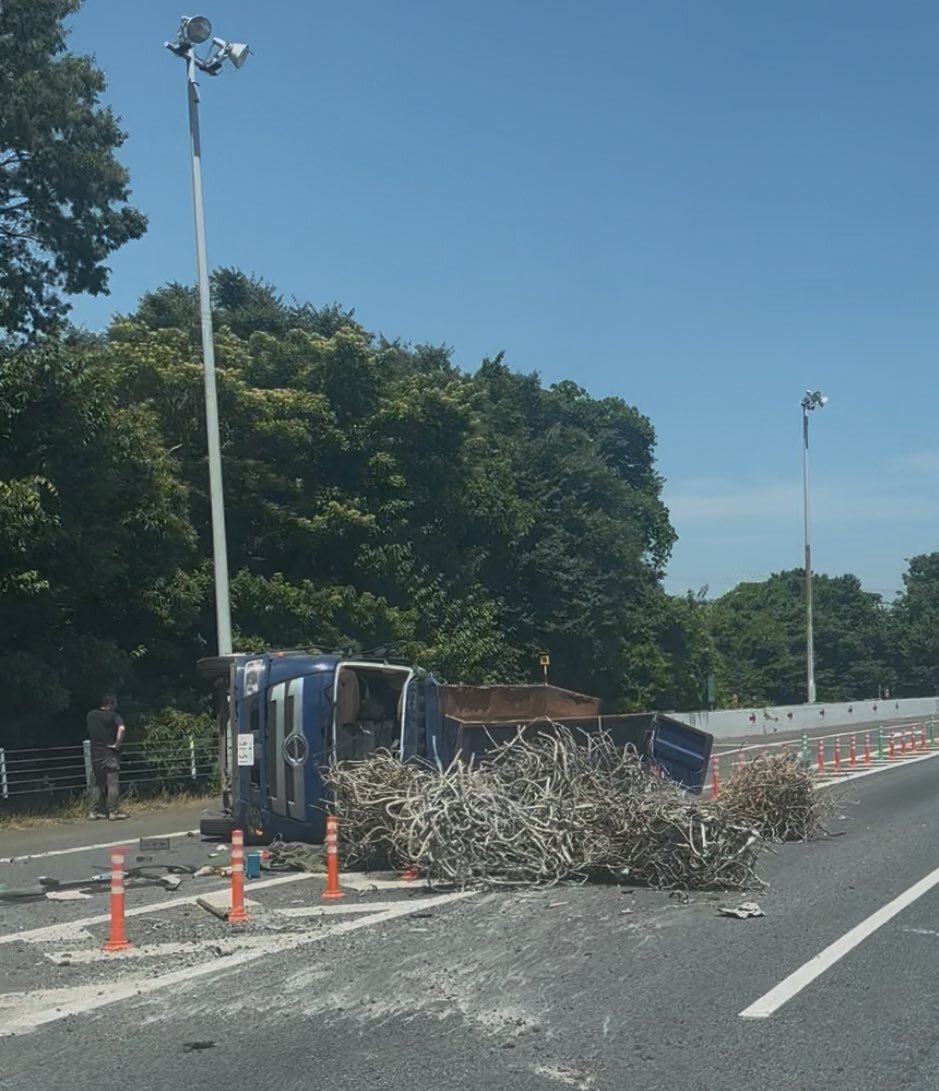 【現場の状況】#交通情報 東関東道 下り 四街道IC~佐倉IC付近 積荷散乱トラック横転事故で規制渋滞6月19日 #千葉 #東関道