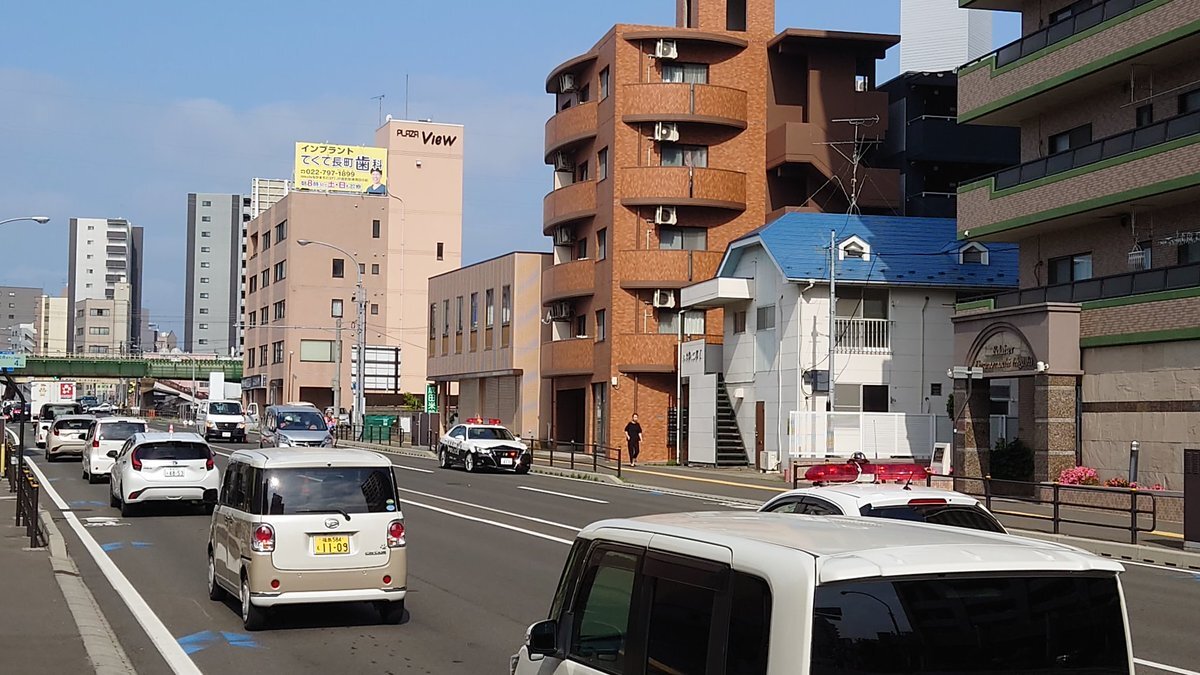 【現場の状況】#交通情報 国道45号線 仙台市宮城野区坂下交差点~苦竹駅付近 ひき逃げ死亡事故で一部通行止め渋滞 犯人逃走中6月20日 #仙台 #苦竹