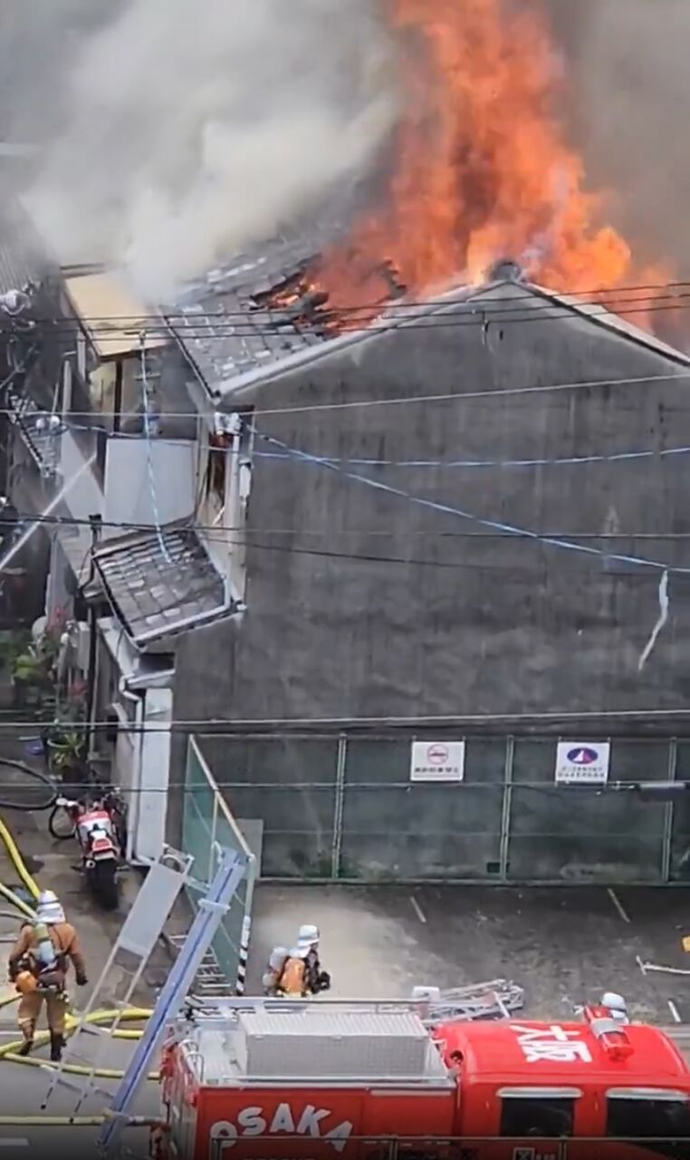 火事が起きているのは、大阪市港区三先にある2階建ての住宅で、25日午前10時すぎ、「近くの建物が燃えています」と近所の人から通報がありました。