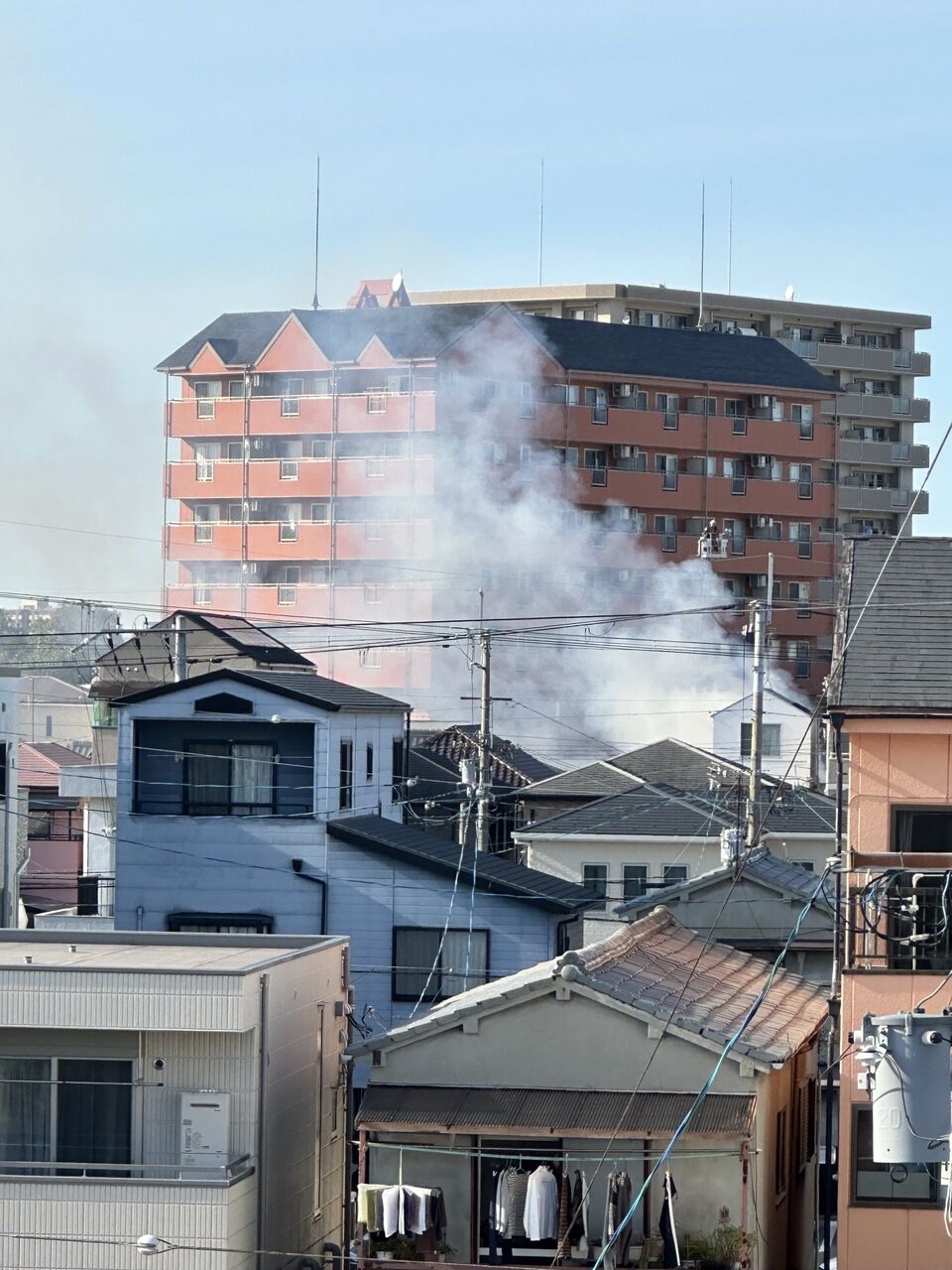 【火事情報】大阪府堺市北区百舌鳥赤畑2丁目 #阪和線 三国ヶ丘駅南側 住宅街建物から火の手あがる火災3月27日 #大阪 #堺 #堺市北区 #火災