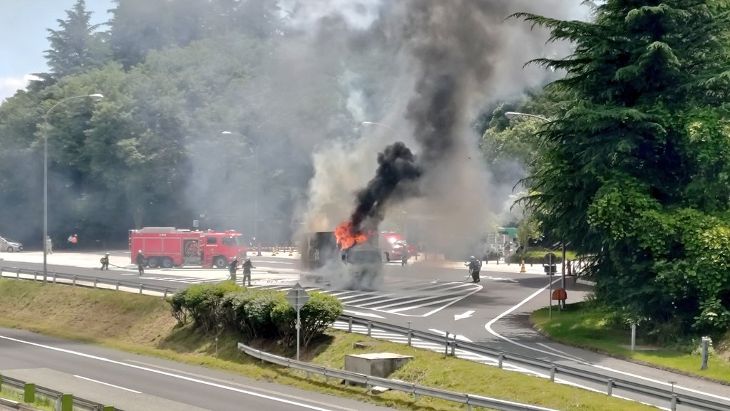 車両火災。先程、栗原市志波姫の東北自動車道下り線志波姫PAで爆発音がして、車両火災が発生し、現在消防による消火作業中です。#火災 #栗原市 #車両火災 #栗原市志波姫 #消防 #東北自動車道下り線志波姫PA pic.twitter.com/pLXwcRm5fc