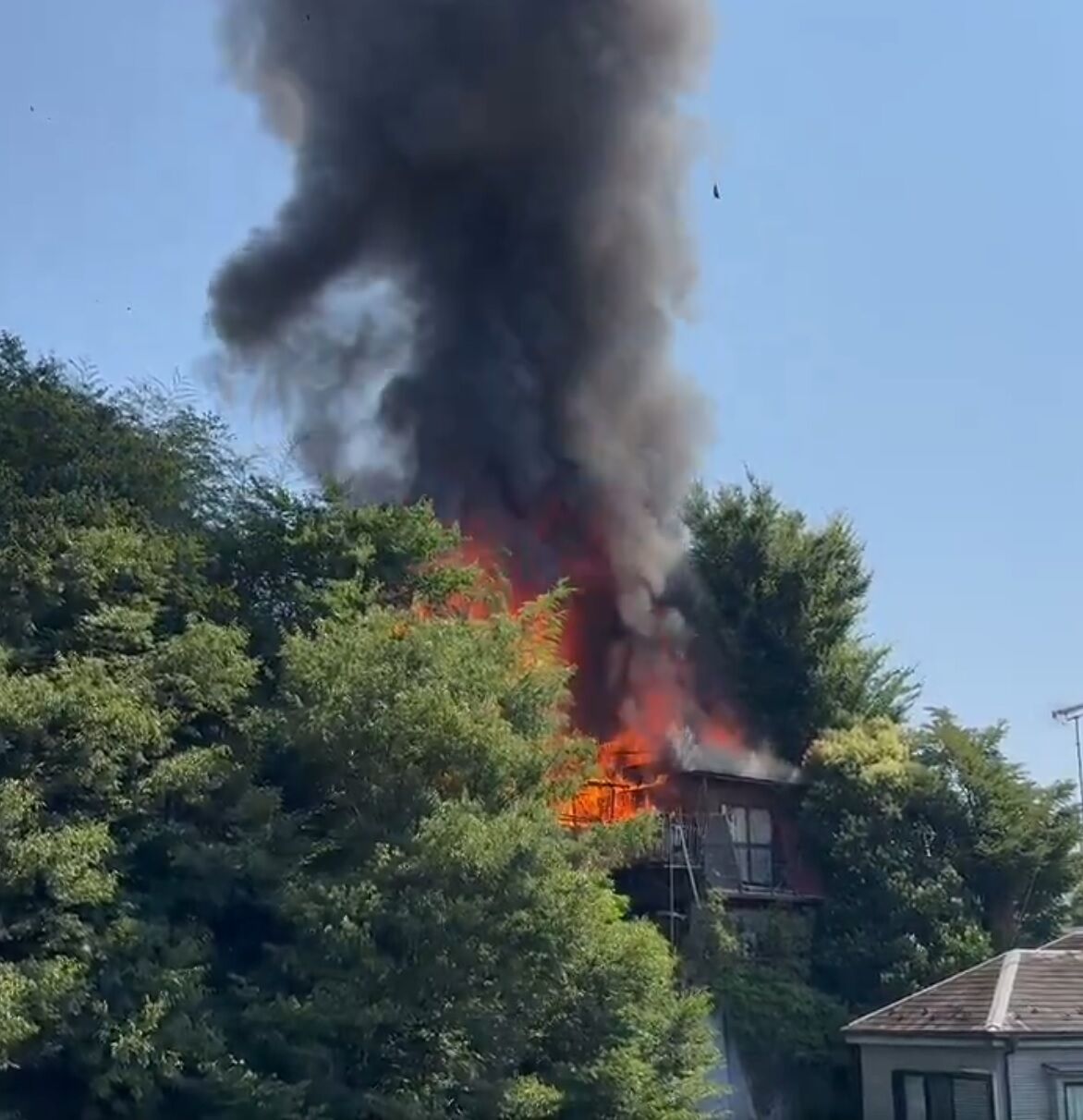 🚒💨のサイレン鳴ってるなと思ったら、黒煙上がってて火事なんだが😱 pic.twitter.com/nGVh1QB8zZ