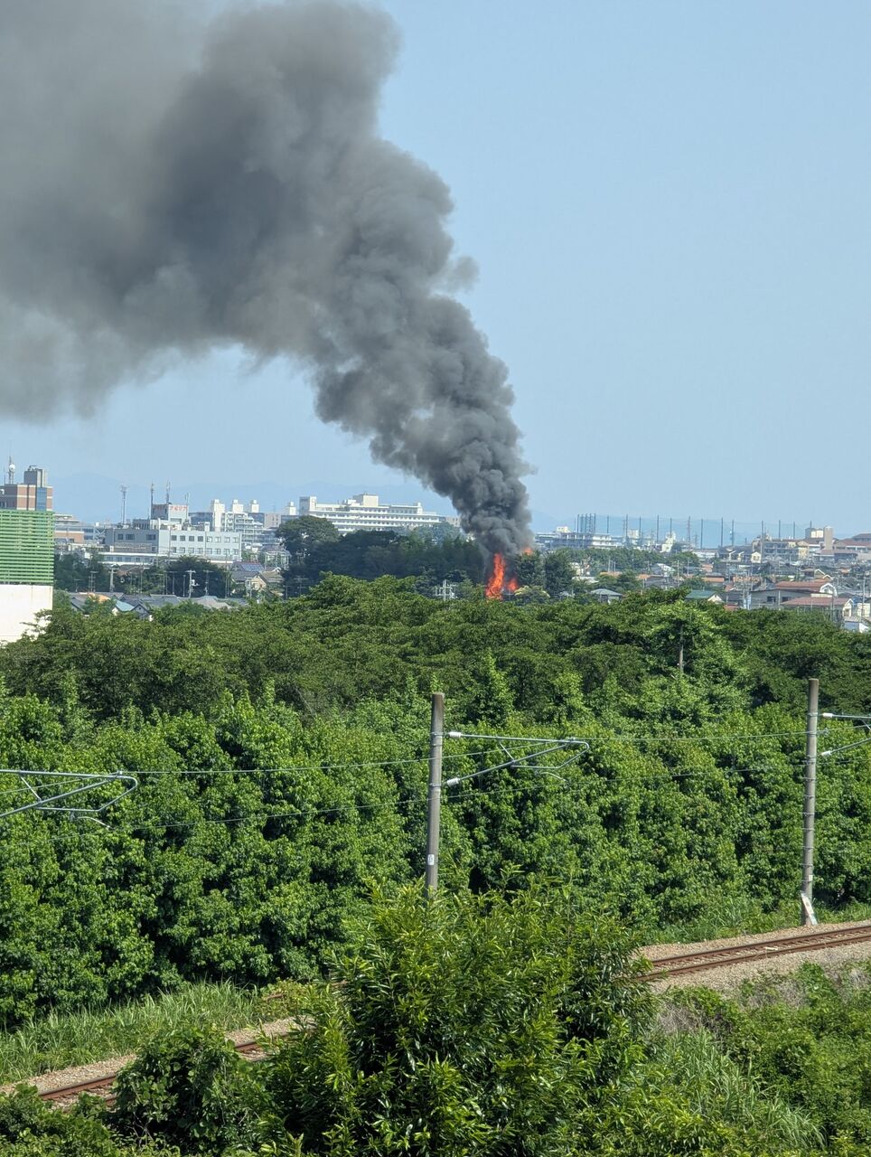 多摩大橋の先で何か燃えてる?🔥火事? 下の線路は八高線 pic.twitter.com/PiGh22rgTX