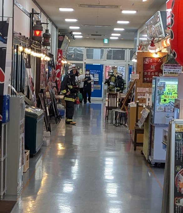 【現場の状況】 静岡県静岡市清水区 清水魚市場 河岸の市 まぐろ館付近 ガス漏れで消防隊駆けつけ従業員とお客退避騒ぎ 一時営業休止6月29日 #静岡 #清水