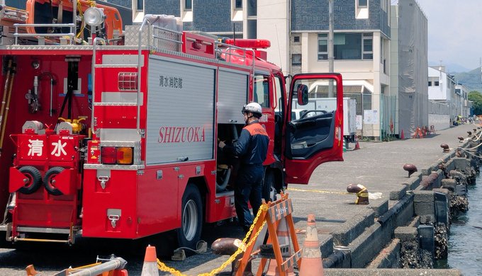 『清水港に海鮮🐟食べに来たのに、🚓🚒いて入れない😭
