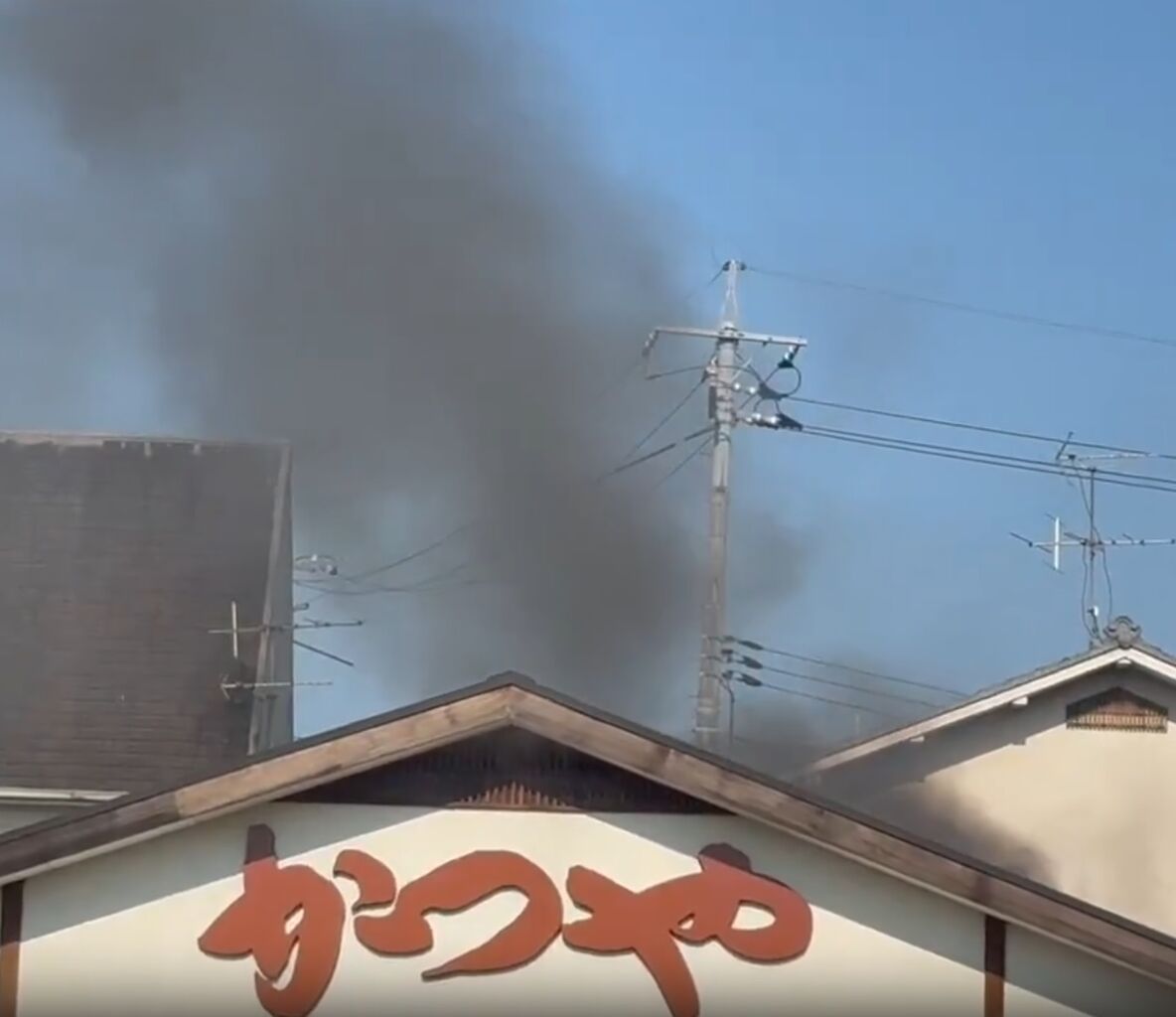かつや東岡山店付近から黒煙があがっている模様