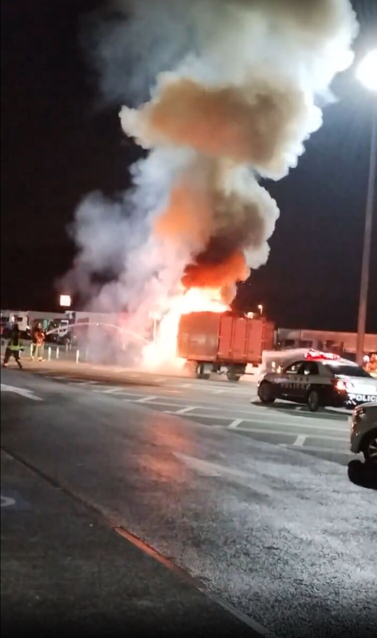 『友部SAでトラック燃えてる😱😱😱 』