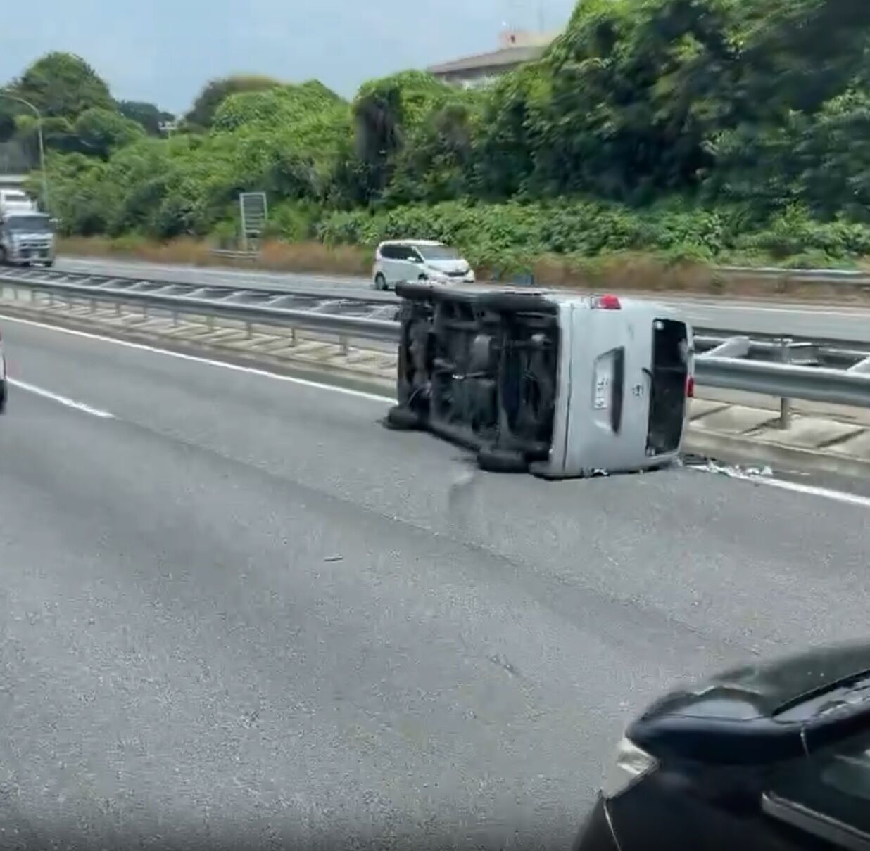 追い越し車線 横転事故