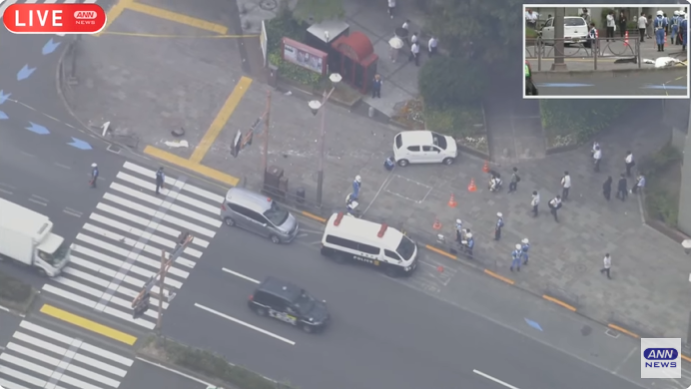 四ツ谷駅前の交差点の歩道に車が突っ込んでるのか だからパトカーと救急車めちゃ来てたのか
