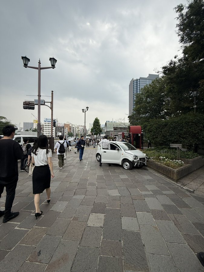 『ついさっき四ツ谷いたんだけどドゴンって音して目の前で車が人を跳ね飛ばしてた、そのまま制御失って歩道乗り上げて建物突っ込んでて