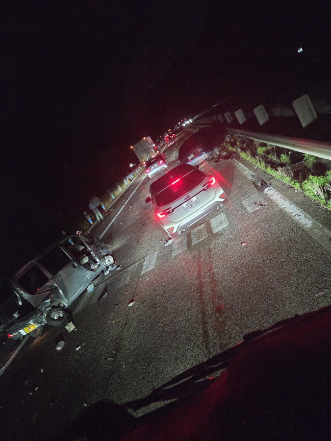 『山陽道上り赤穂ICの5㎞バックくらいかな?80㎞で左を平和に走ってたら数台前がめちゃくちゃ急ブレーキ。』
