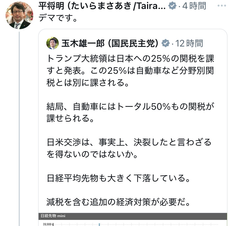 【悲報】玉木雄一郎、デマ情報を流布 自民党議員5人から袋叩きにされるwwwwwwwwwwwwwwwwwwwwww 2025/7/9 速報 1: document.write(” + ”); document.write(” + ”); 続きを読む ——— Source: アルファルファモザイク 【悲報】玉木雄一郎、デマ情報を流布 自民党議員5人から袋叩きにされるwwwwwwwwwwwwwwwwwwwwww