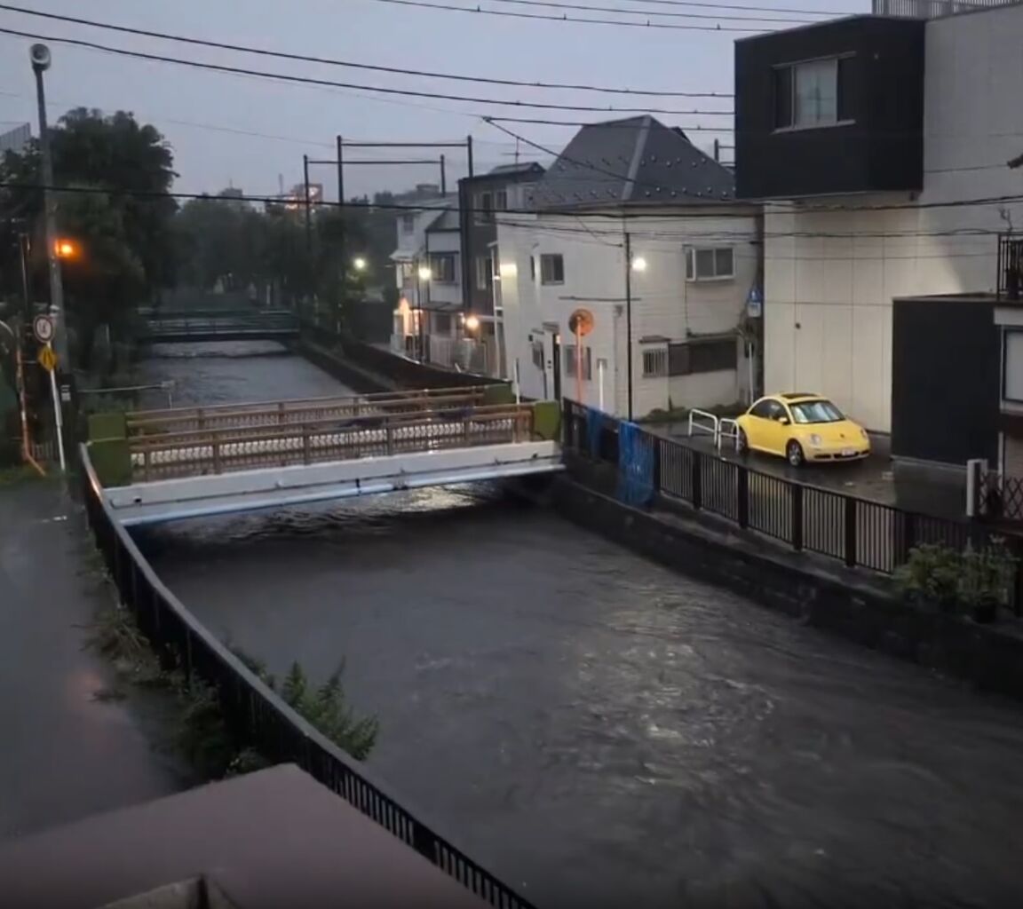 氾濫危険水位を超えた東京都中野区沼袋の妙正寺川の現在と平常時です pic.twitter.com/zxiXvFAgcr