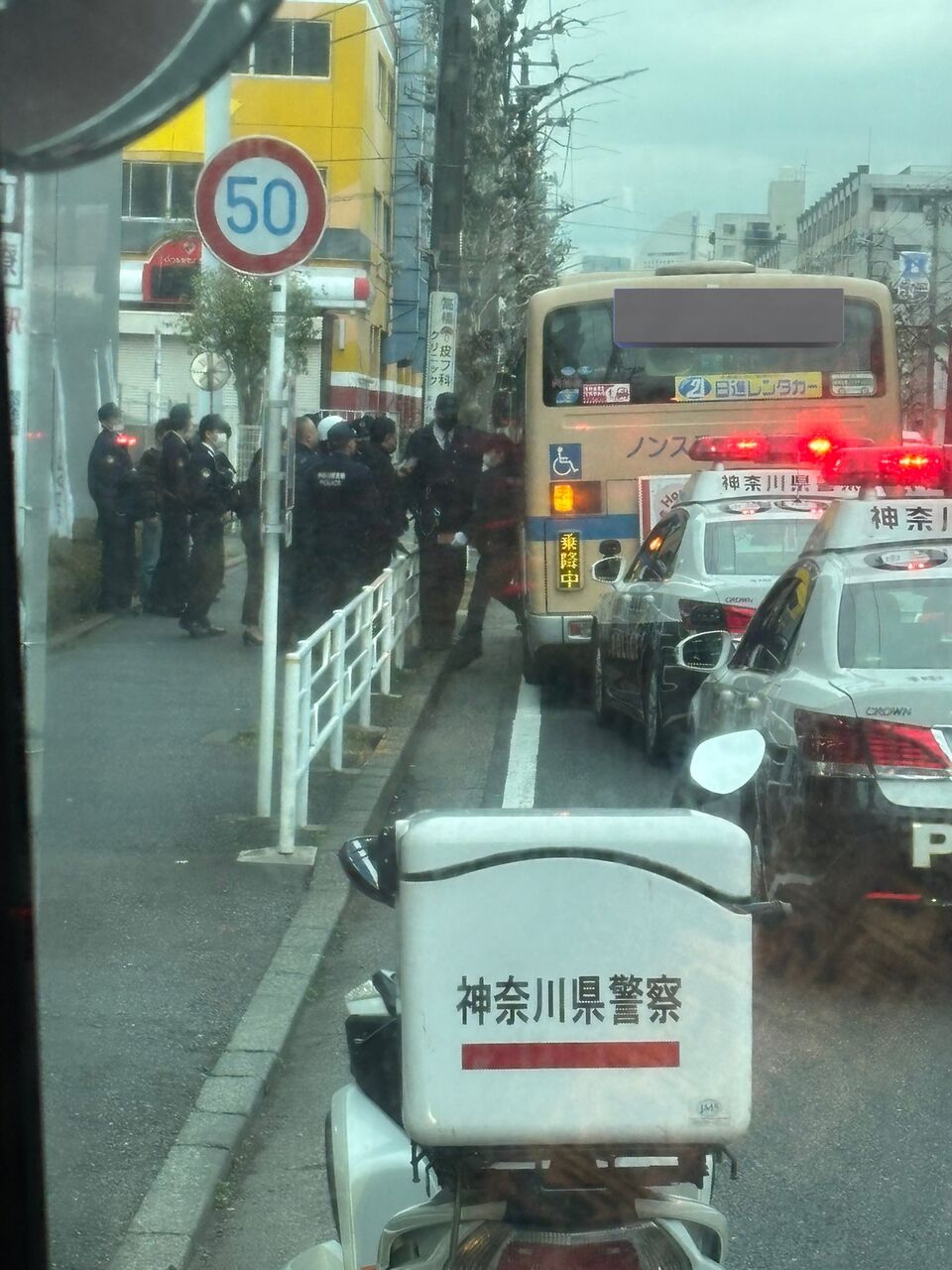 『市営バスと乗用車が接触したのか知らないけど、警察車両赤灯回しながらめっちゃ路駐してた』
