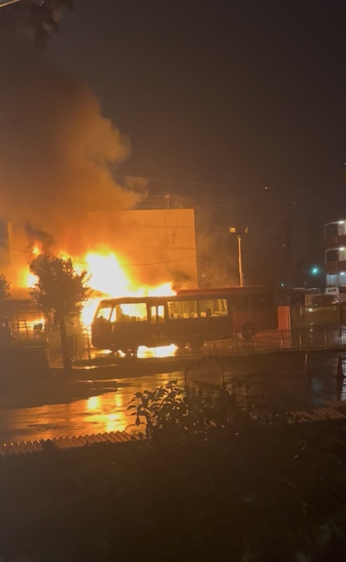 信じられるか?自宅の向かいの施設のバスが燃えてんだけど…。一応通報したけど。