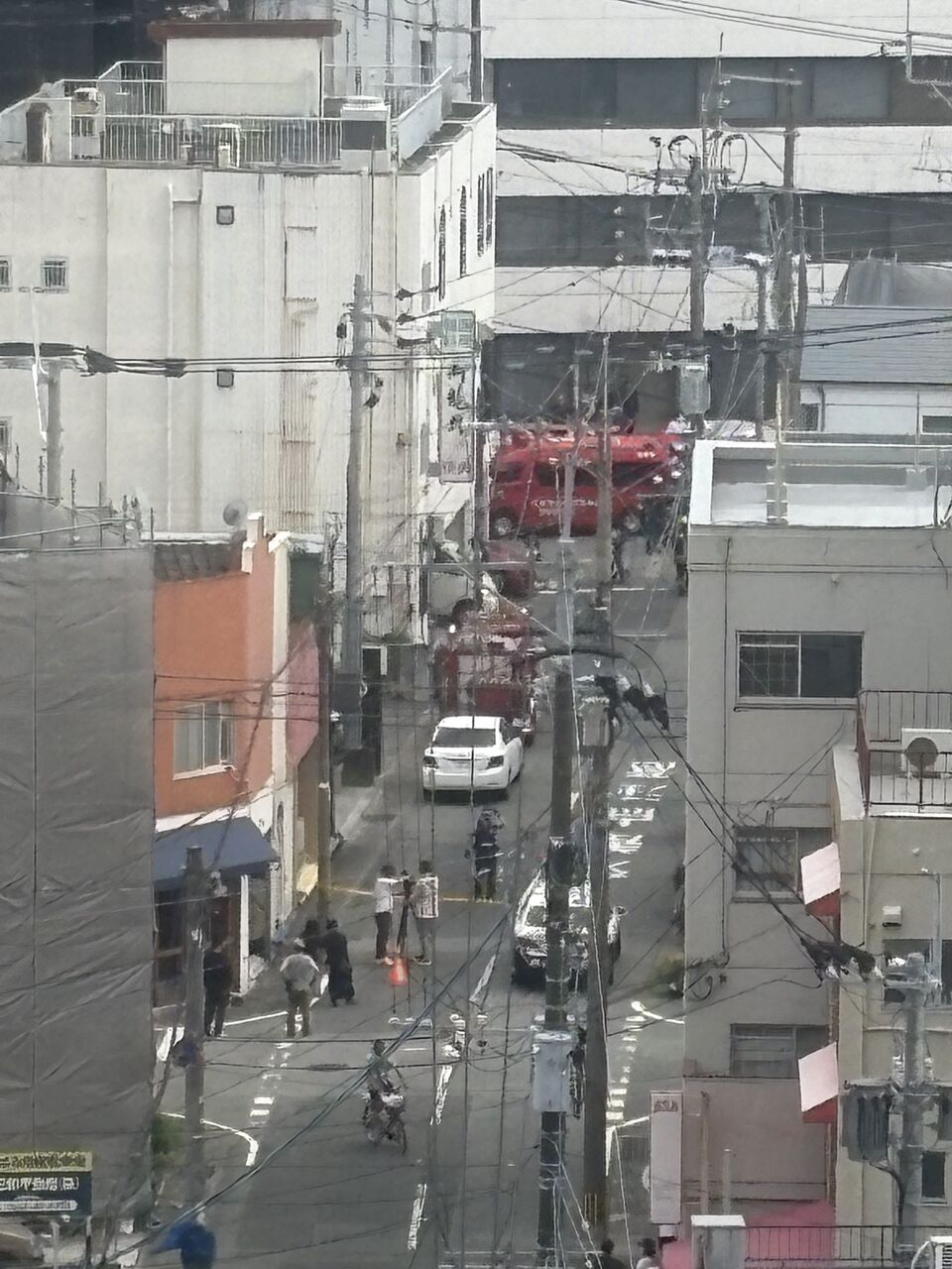 久留米の神浦交差点のトコ、解体作業で事故かも。