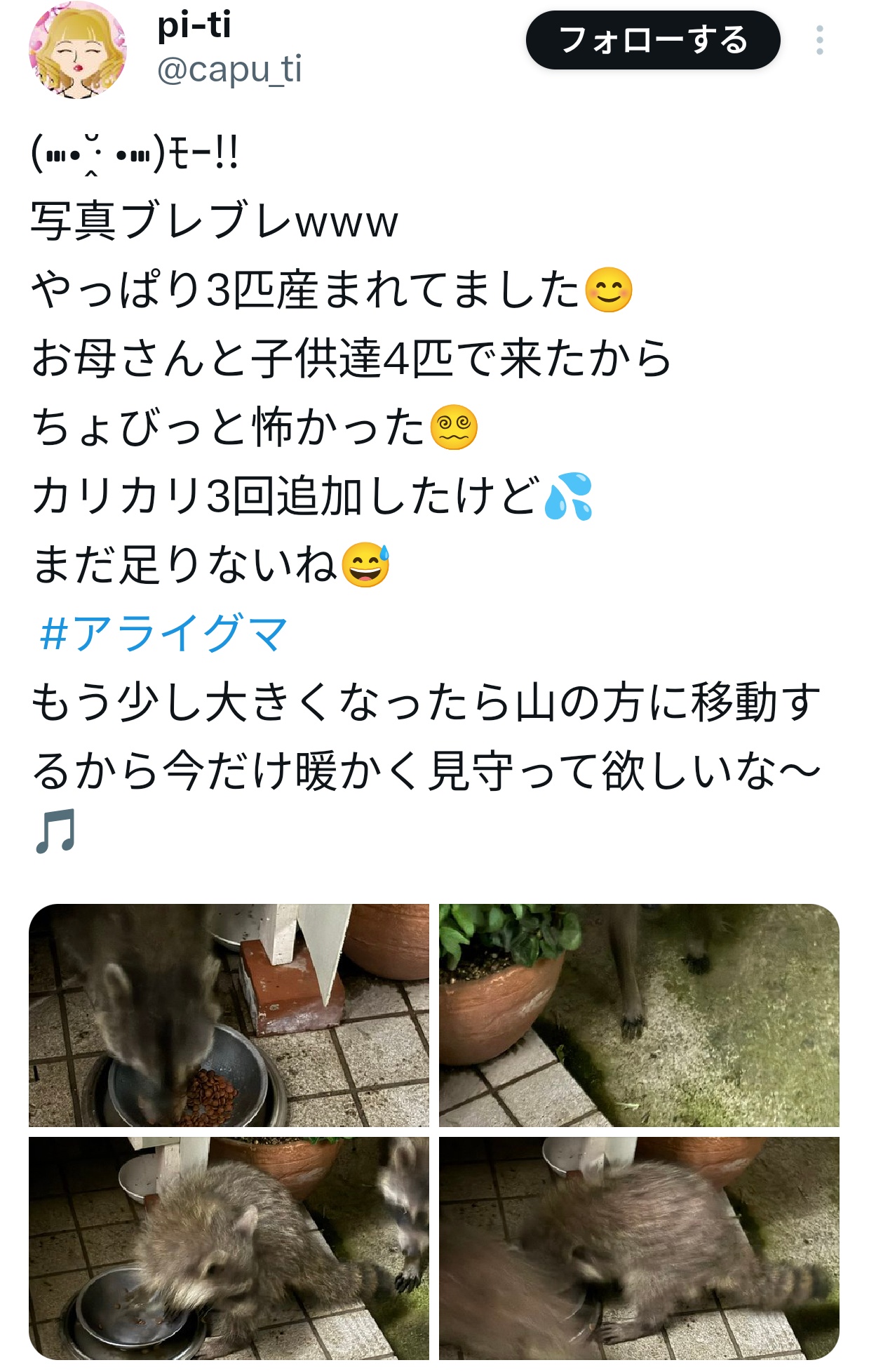 【画像】アライグマに餌付けをしている迷惑女さん、炎上してノートを付けられお気持ち表明へwwwwwwwwwwww 2025/7/17 速報 1: 愛誤は怖いね document.write(” + ”); 関連記事 【動画】「鬼滅の刃」コスプレの中国女さん、中国人に「お前は中国人だ、何を着てもいい。でも日本の服装だけはダメだ!」と怒鳴られる 【画像】婚活女さんのプロフ、ガチのマジでエグすぎるwwwwwwwwwwwwwwwwwwwwwwwwww 【動画】チャリカス女さん、三人乗りで爆走wwwww 【画像】アメリカぼっち女さん「私は陰キャで寂しいの…」 陽キャカメラマン「写真撮っていい?」 【画像】このショートヘア女さんが可愛すぎると話題にwwwww【pickup】 document.write(” + ”); 続きを読む ——— Source: アルファルファモザイク 【画像】アライグマに餌付けをしている迷惑女さん、炎上してノートを付けられお気持ち表明へwwwwwwwwwwww