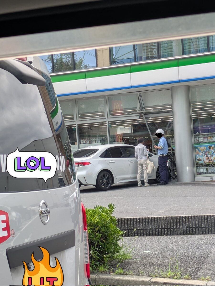 『ファミマの入口に車突っ込んでた怪我人とかはいなさそうやけど、、、というか、いませんように🙏』