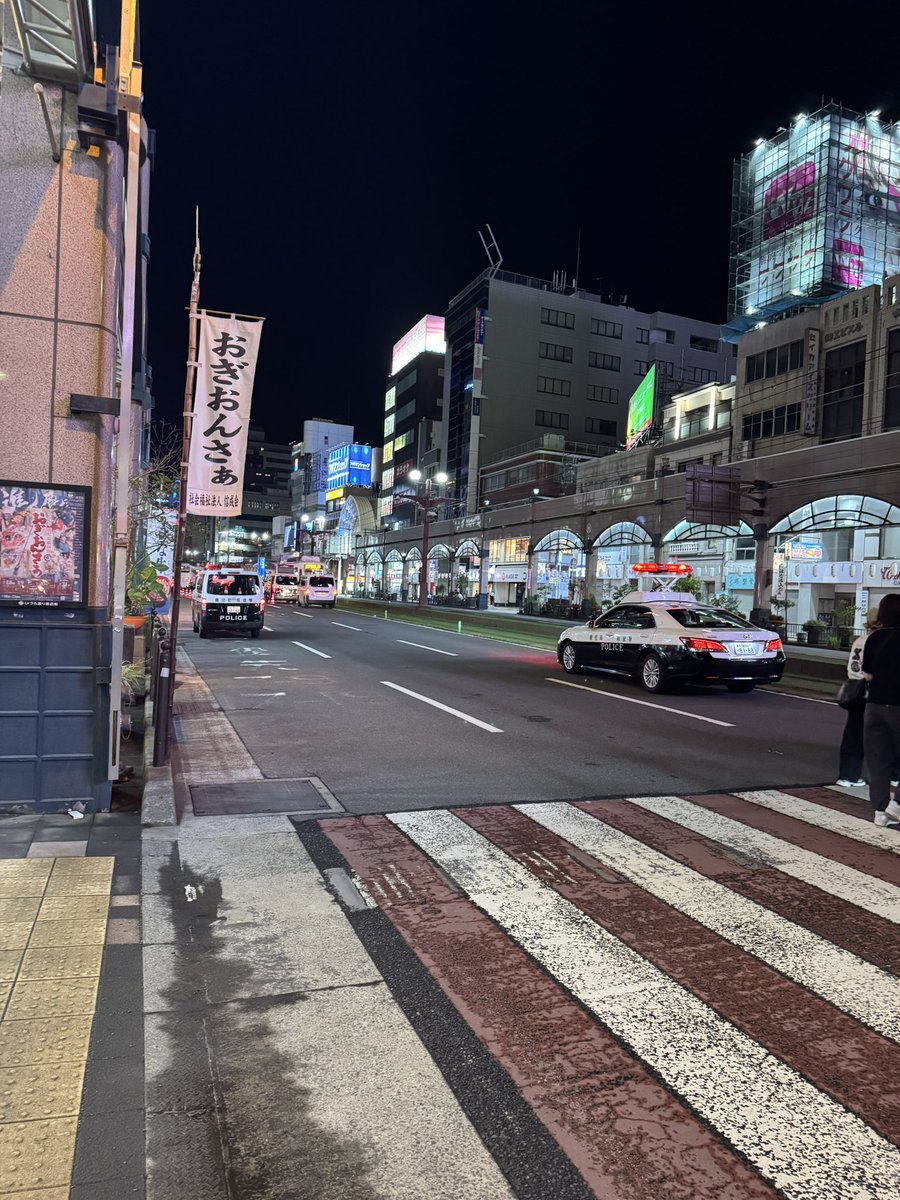 天文館で事故起きてて草、警察来てるし道路に靴落ちてるし血溜まりある