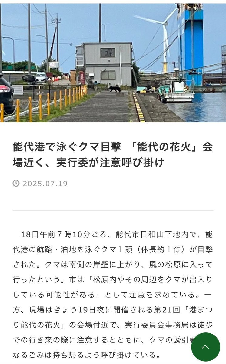 ※花火大会会場近くで熊の目撃情報