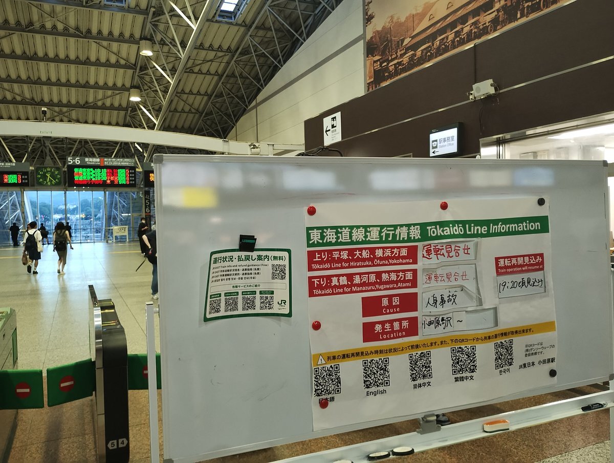東海道線は、小田原駅での人身事故の影響で、上下線で運転を見合わせています。運転再開は19時20分頃を見込んでいます。 #東海道線 #Tokaido_Line https://t.co/LojididwyV— JR東日本【東海道方面】運行情報 (公式) (@JRE_F_Tokaido) July 21, 2025