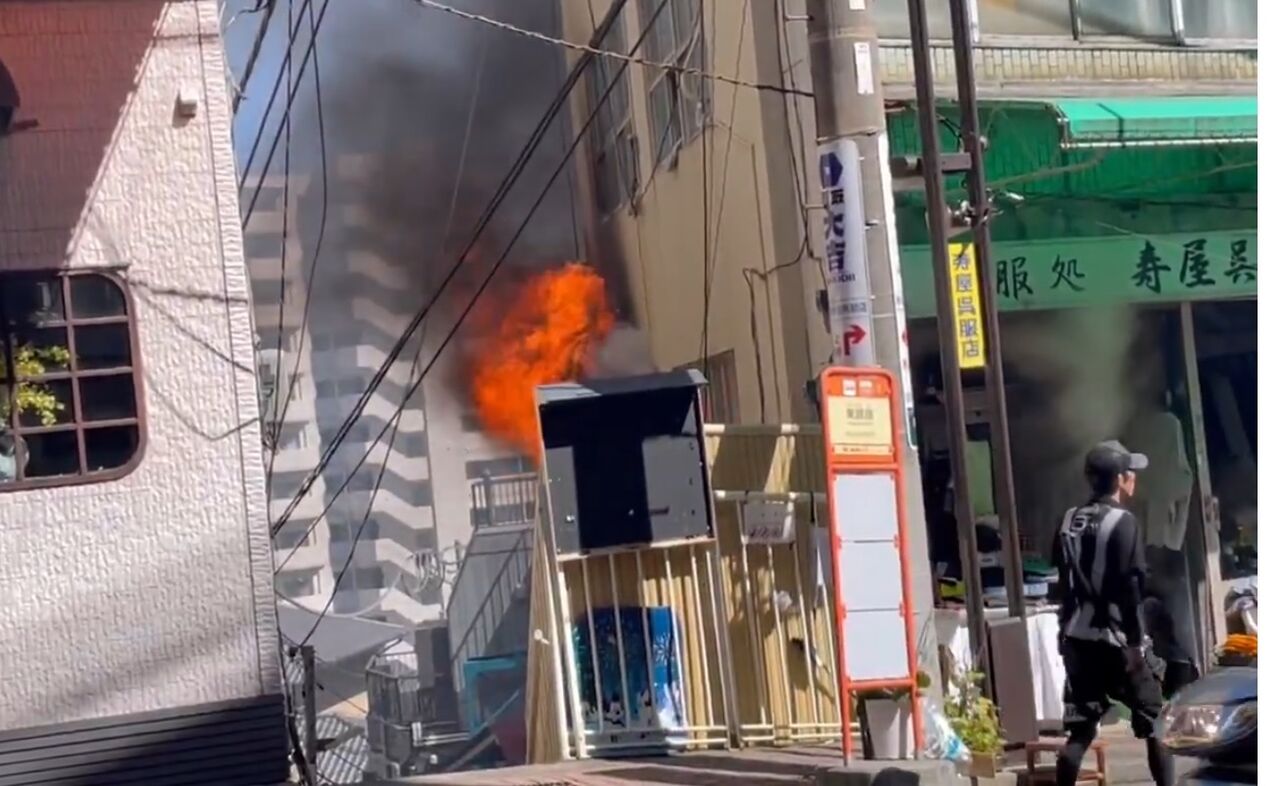 マックスバリュエクスプレス 熱海咲見町店周辺の建物から炎があがっている模様