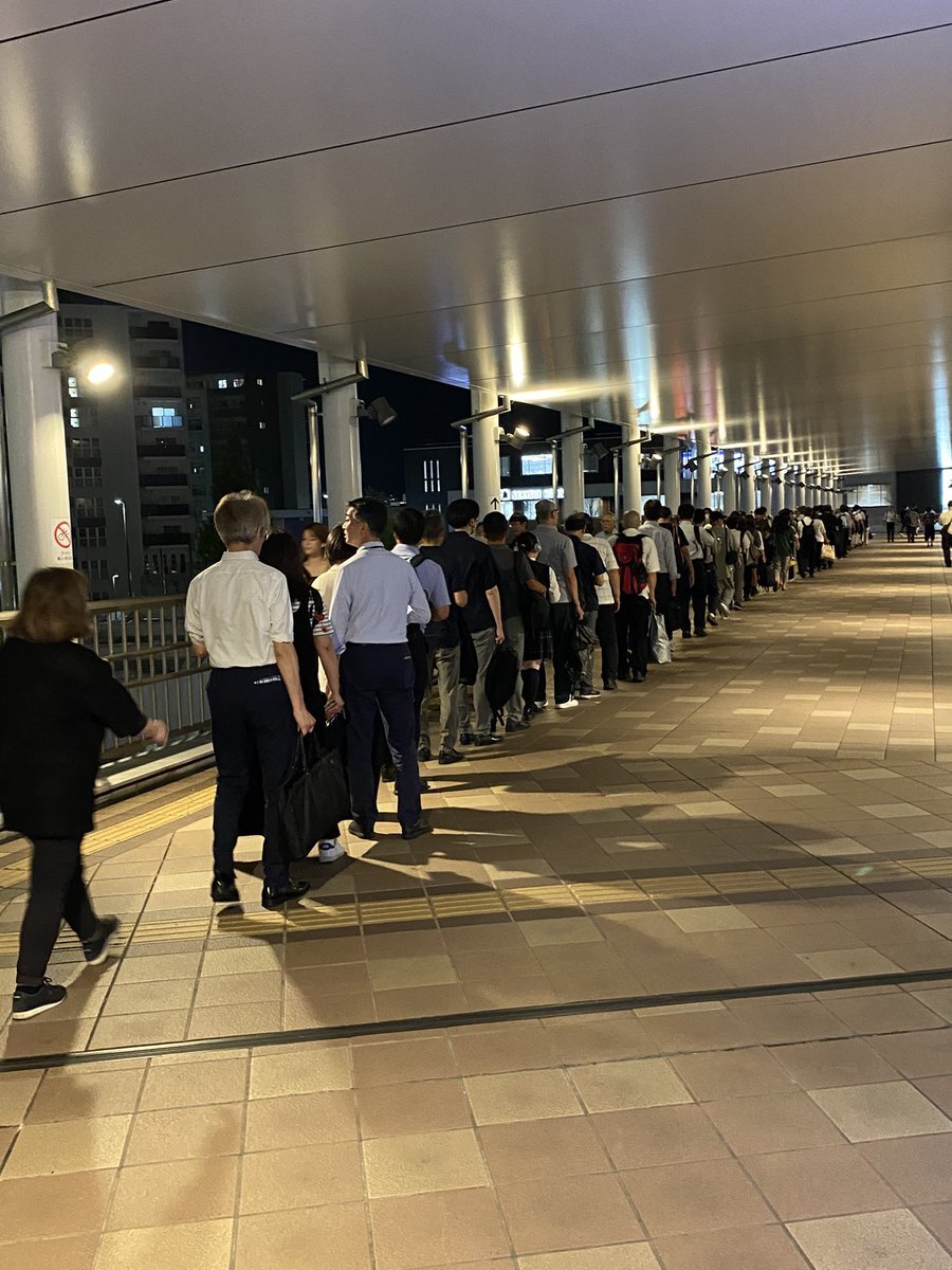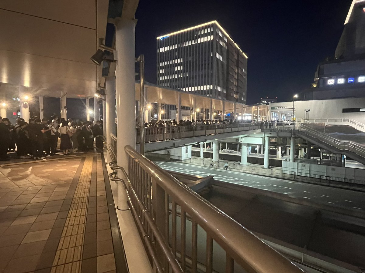 相模線海老名駅、入場待ちの列がえぐい…振替輸送はありがたいが終電まで続くのかな。大変だ💦