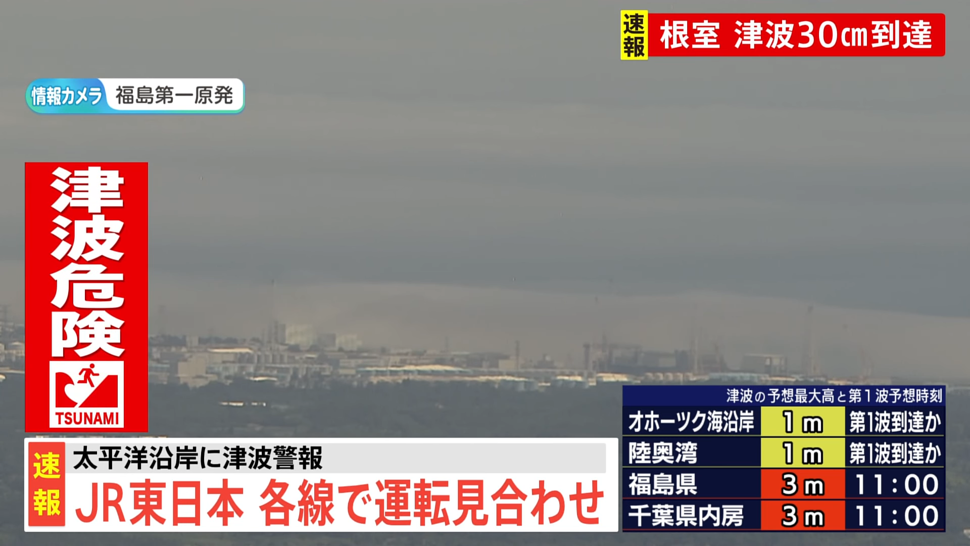 JR東日本はカムチャツカ半島付近で起きた強い地震で津波警報が発令された影響で運転を見合わせている線区について、最終列車まで運転再開できない見通しだと発表しました。