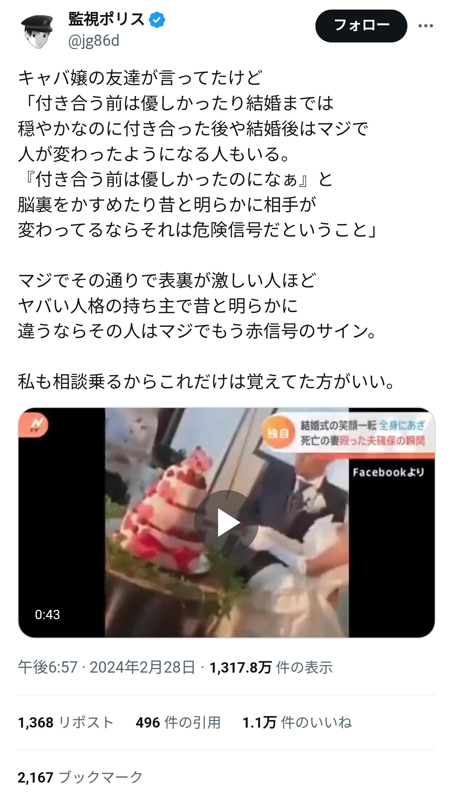 【動画】めちゃくちゃ優しそうな男さん、結婚してから豹変してしまう ←何も言い返せんかったわ… 2025/8/2 速報 1: 怖すぎ document.write(” + ”); 関連記事 米倉涼子似の婚活女(38)「年収1300美人だけど結婚したいと思えない笑」 【画像】ディズニー結婚式の値段、ヤバすぎるwwwww 【画像】統一教会の合同結婚式ガチャ一覧wwwwwwwwwww 【悲報】参政党・さやのファン(50代男性)、結婚発覚で落胆 【悲報】35歳女性、結婚も妊娠もしていない自分に号泣する document.write(” + ”); 続きを読む ——— Source: アルファルファモザイク 【動画】めちゃくちゃ優しそうな男さん、結婚してから豹変してしまう ←何も言い返せんかったわ…