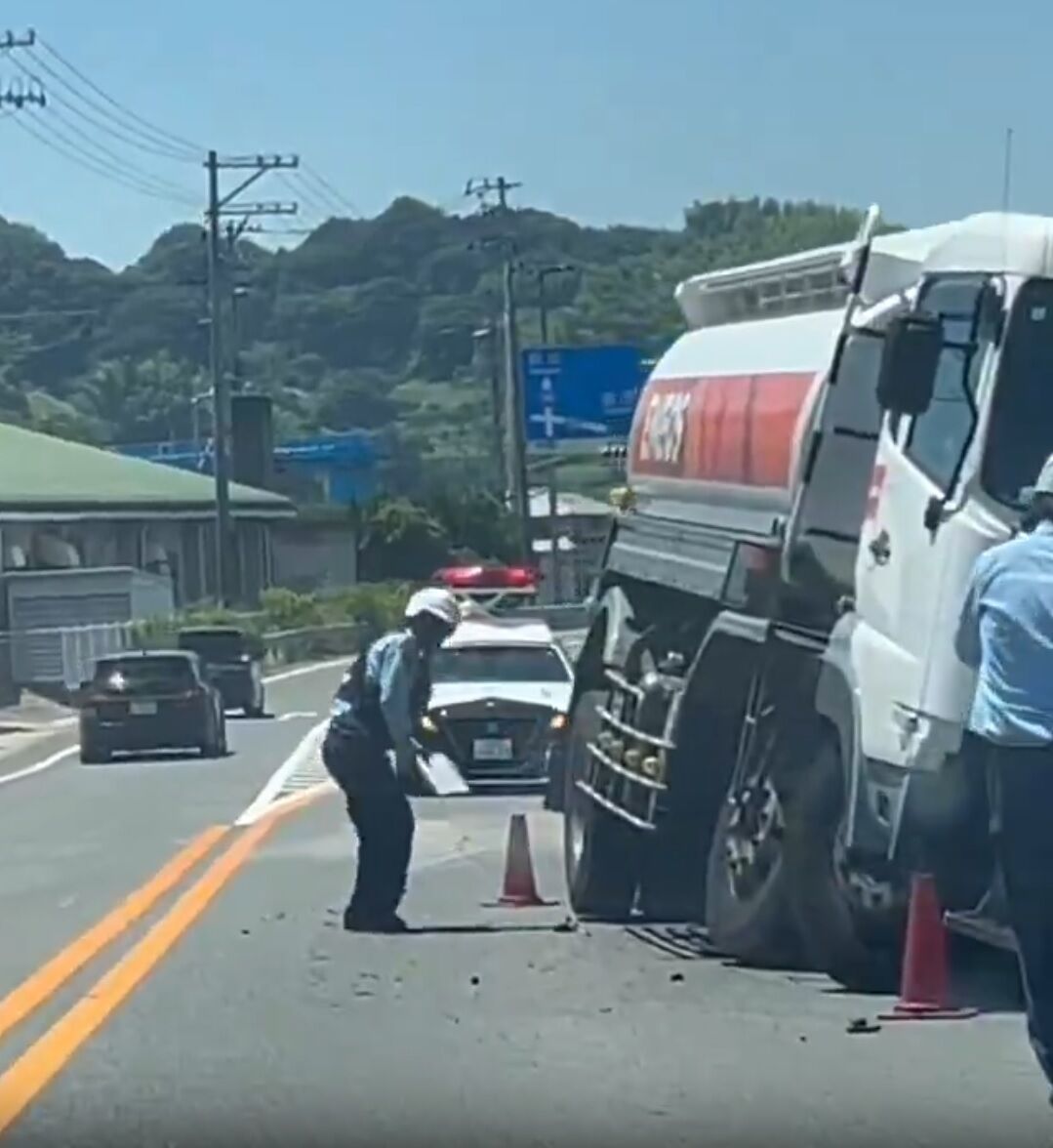 『タンクローリーの前側が凹んでるから被害側っぽい?』