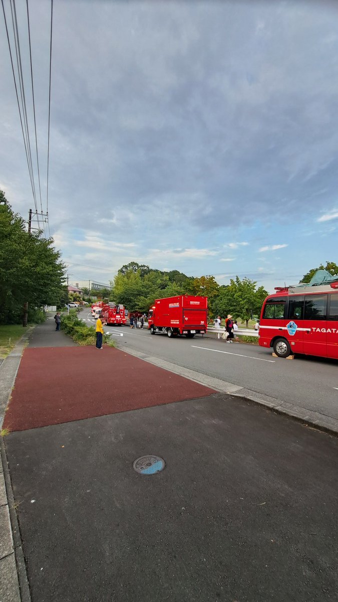 『高専の近所の公園付近が車両の通行規制敷いてる上に救急車、消防車、警察が多数集まって規制線まで引かれてる』