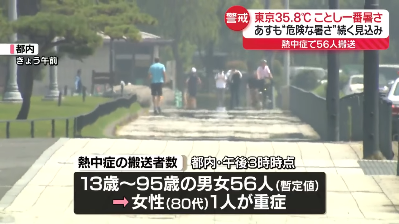 東京23区で、ことし6月から7月末までに56人が熱中症の疑いで亡くなったことが東京都監察医務院の調べでわかりました。