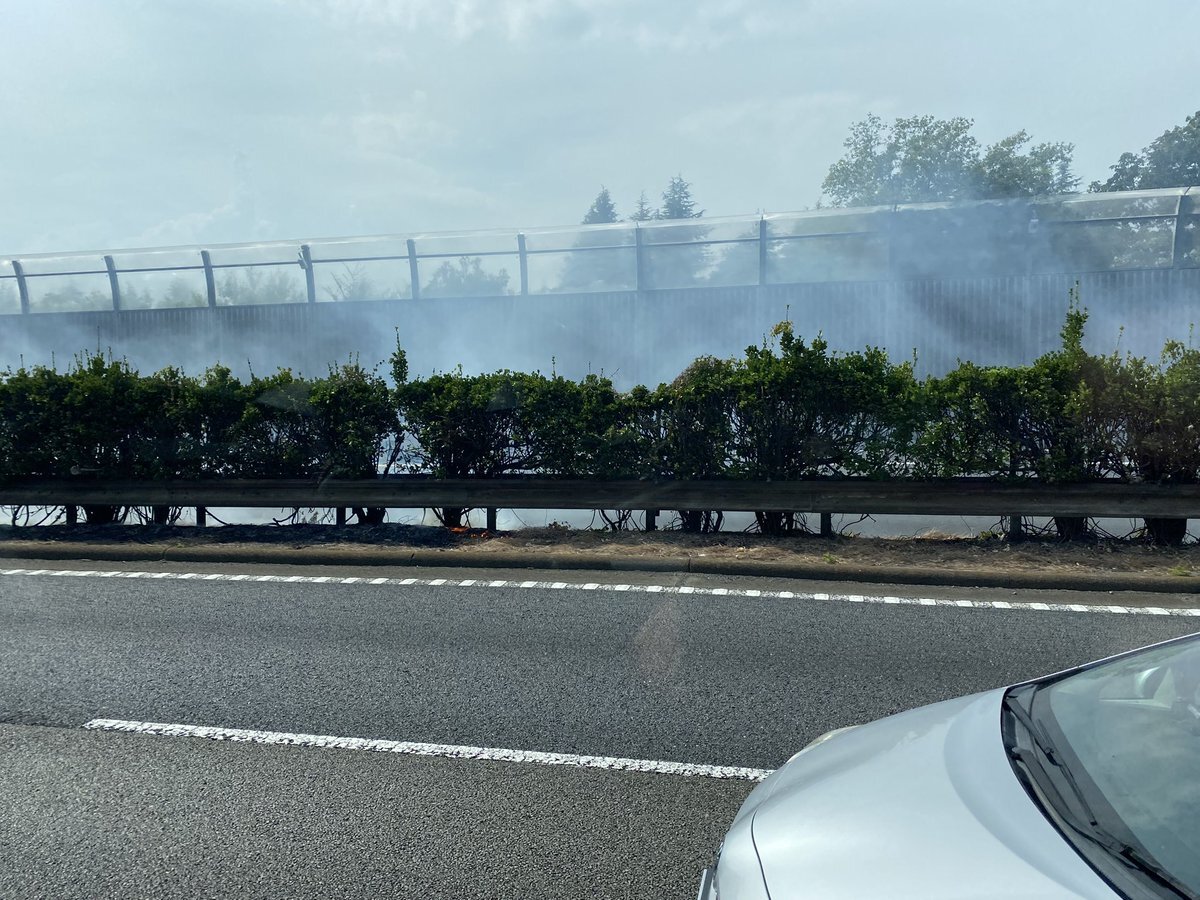 『東名で綾瀬〜海老名の間で中央分離帯の草が燃えとる😇』