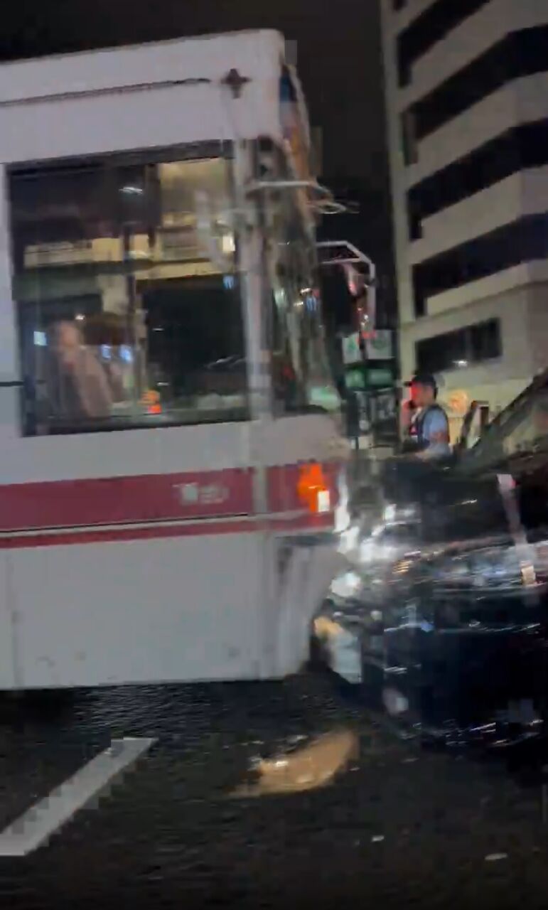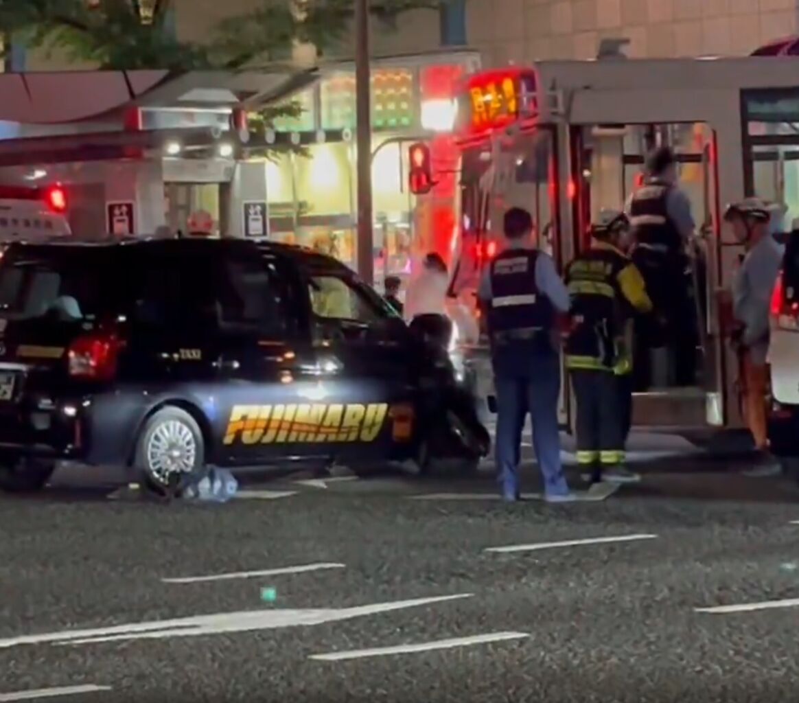 博多駅付近、バスとタクシーが正面衝突事故起こしてる()