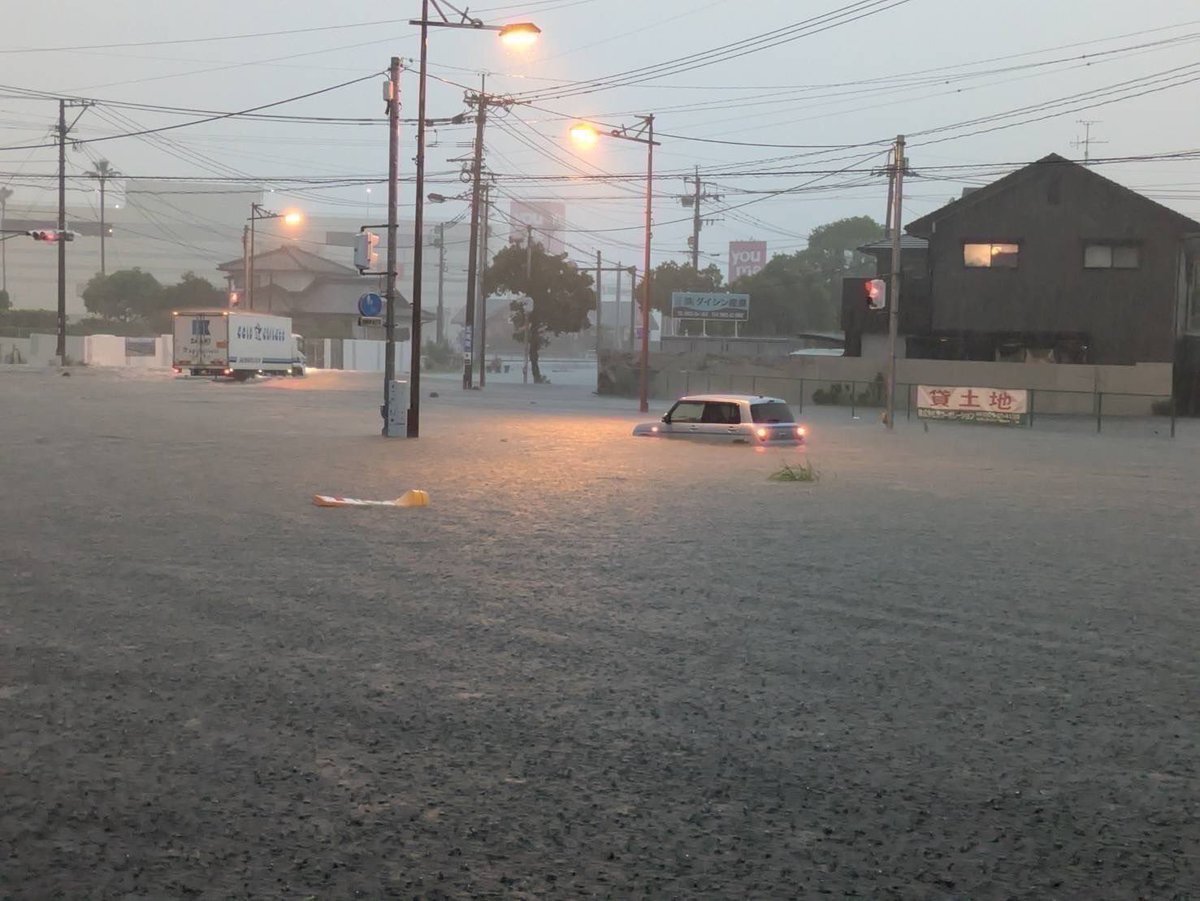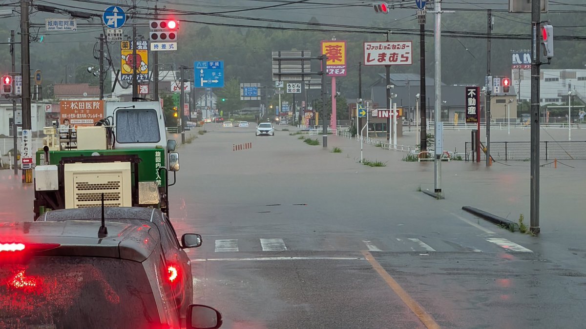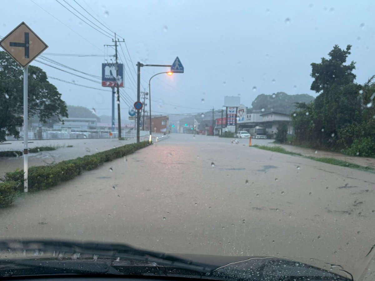 7時現在店舗前は道路が水没しております💦道の駅周辺も通行止めとなっております。】他の地域でも冠水や通行止めなど情報に留意してください。#のさりん pic.twitter.com/tkrFE4pa3A