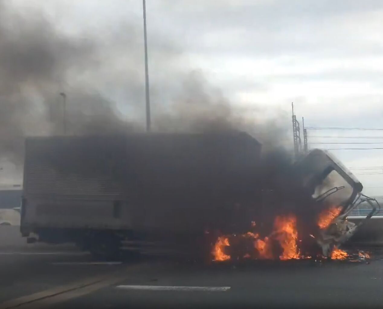 『新木場の高速道路でトラックありえないぐらい燃えてた』