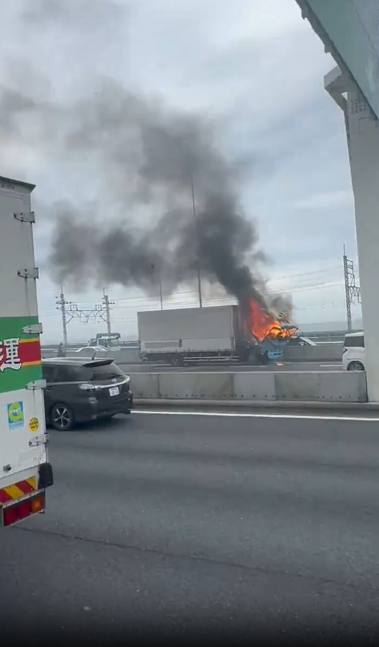 『渋滞してないと思って出かけたら、湾岸線の新木場あたり?でなんか車がつまってて、トラック燃えてた』