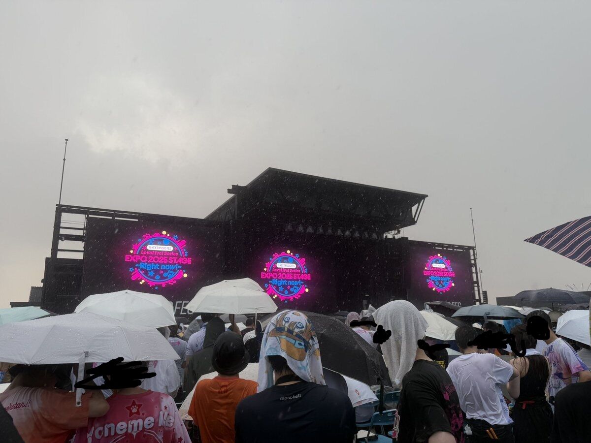 突然の豪雨でライブ中断!帰ります。傘が役に立たん。靴の中までびしょ濡れ#大阪・関西万博 #ラブライブ pic.twitter.com/HYX4zRfDxo— 森 (@c_lobbin) August 14, 2025
