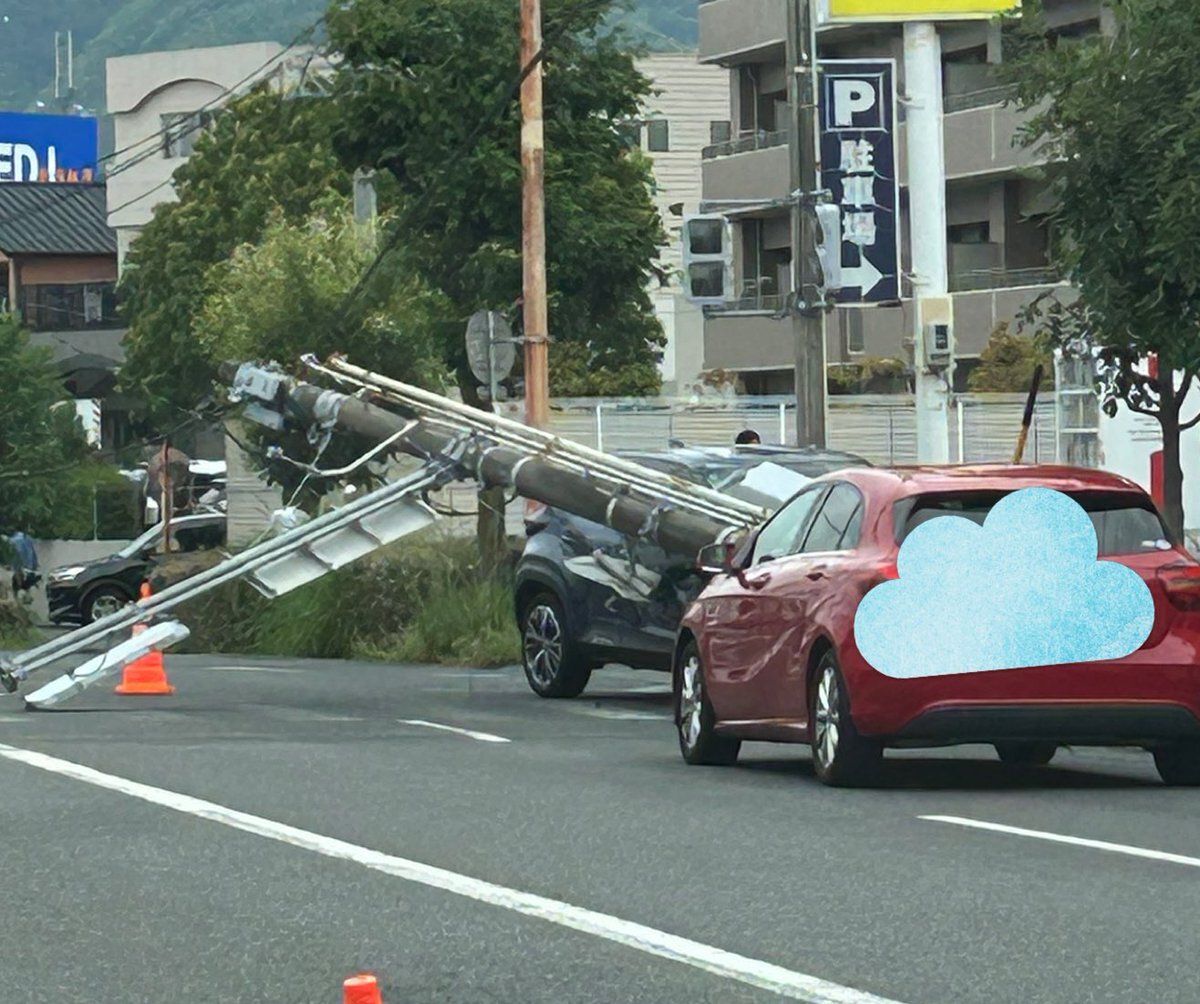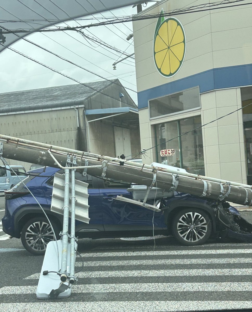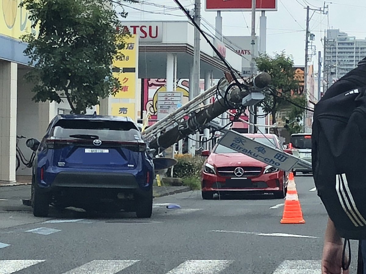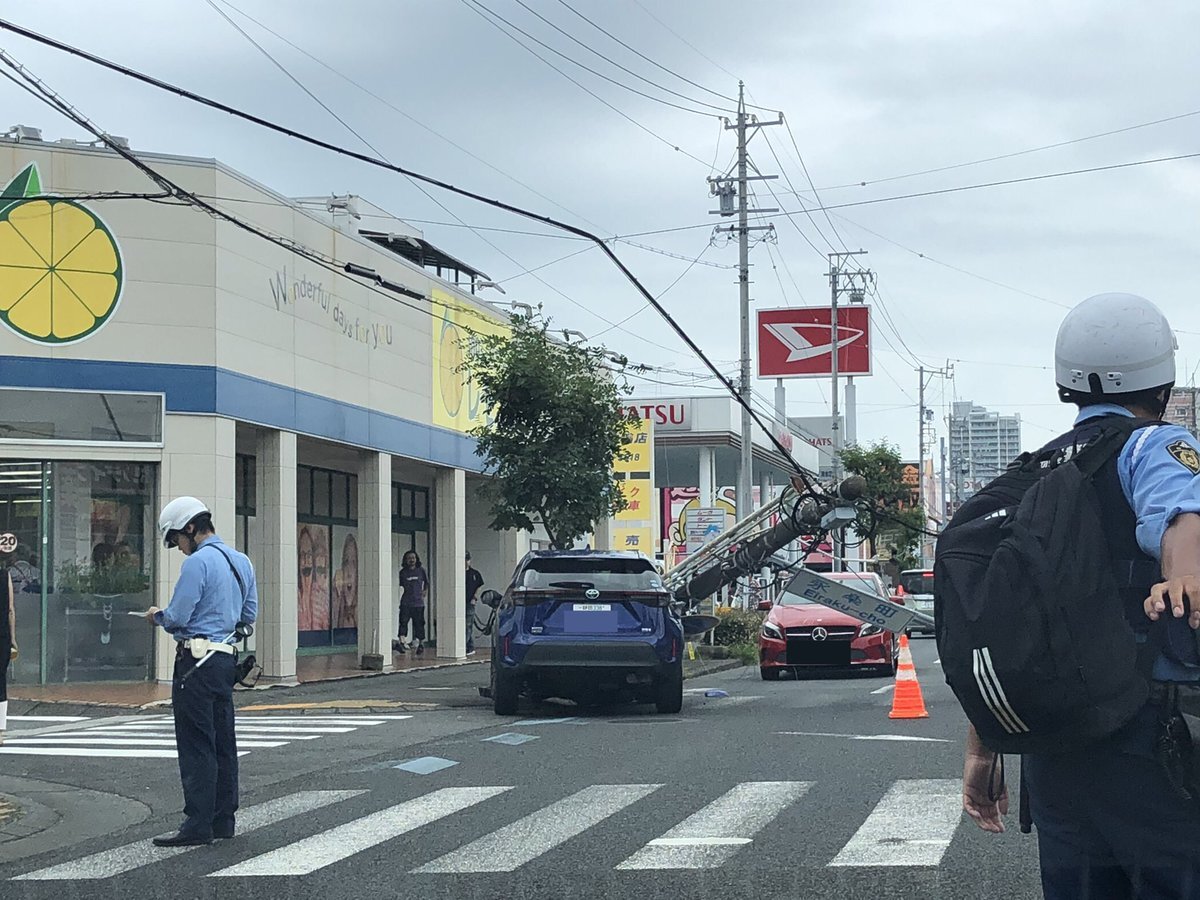 救急車は来ていなかったなぁ。電柱が折れてるの初めて見た。 pic.twitter.com/jahOKlX6gb