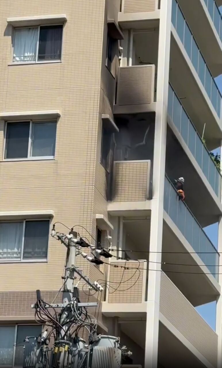 ん?なにやろ?隣のマンションで火災発生