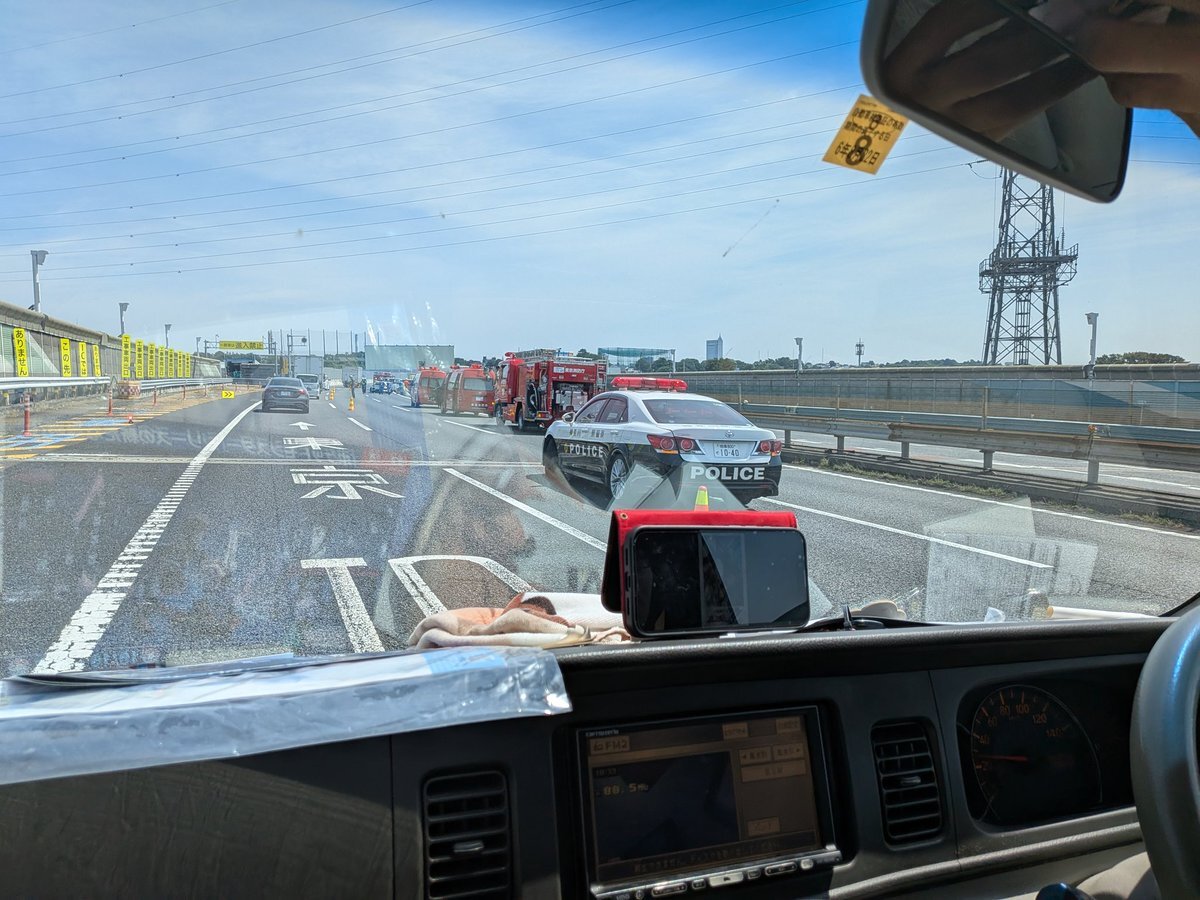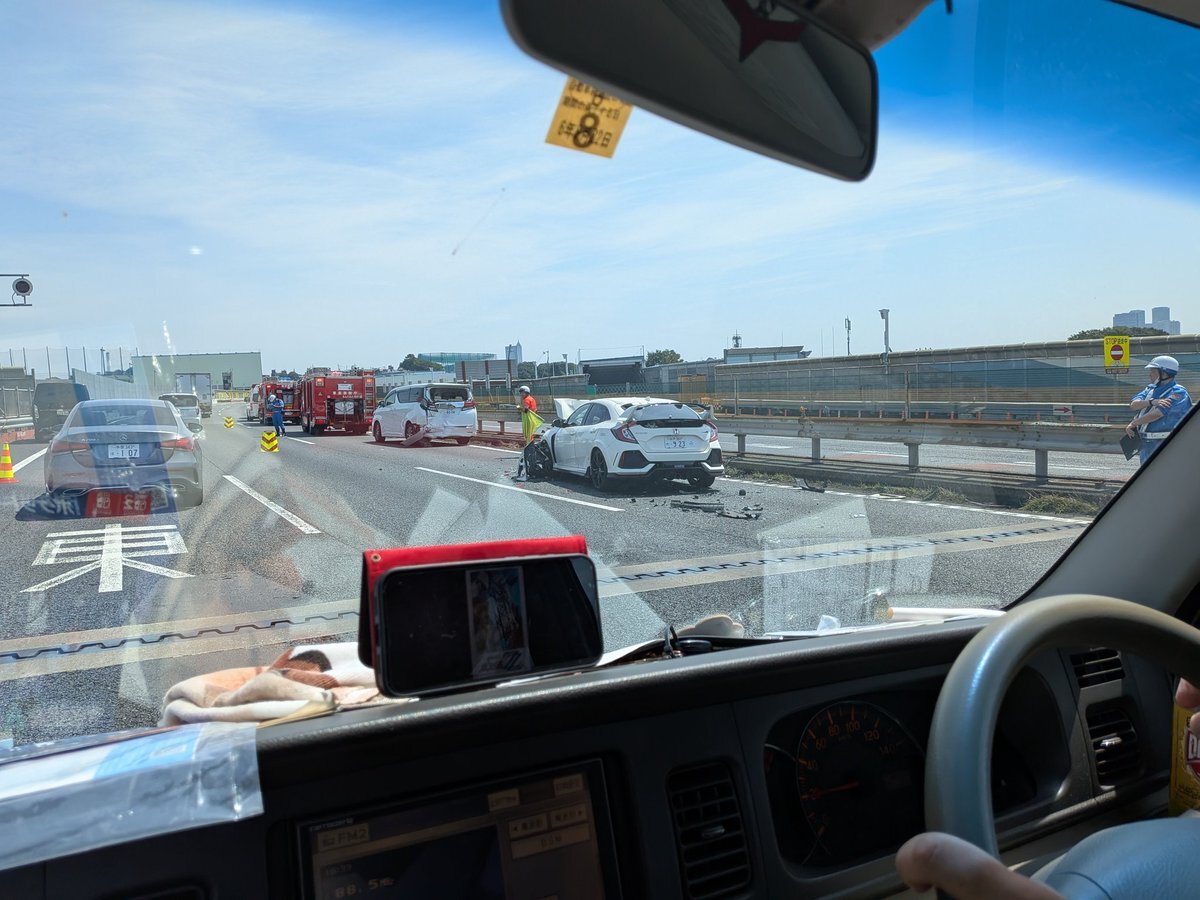 【現場の状況】#交通情報 東名高速 上り東京方面 東名川崎IC~東京IC料金所付近 破片散乱乗用車3台からむ衝突事故で規制渋滞8月18日 #東名 #世田谷区 #川崎