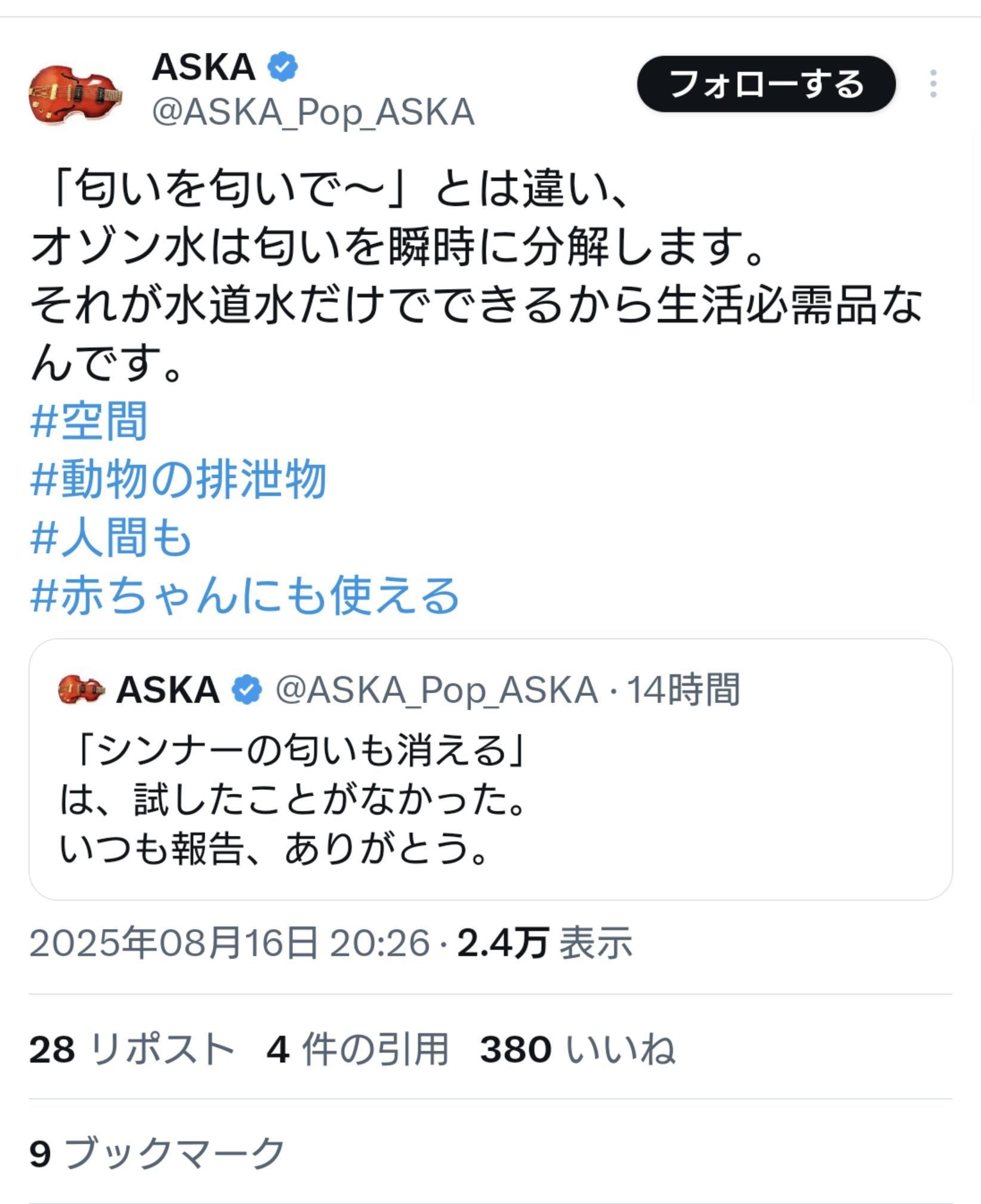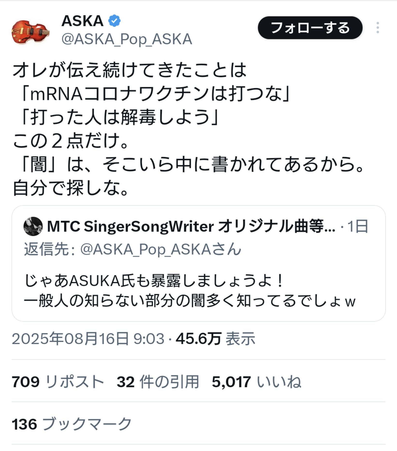 【悲報】ASKAさん、謎のポストを連発してしまう 2025/8/19 速報 1: なんでや… document.write(” + ”); 関連記事 【緊急速報】ASKA、国が絶対にイベルメクチンを承認しない理由をバラしてしまう…… 【悲報】元チャゲアスのASKAさんが開発した「ウイルスを死滅させる機械」、購入者に届かず 【悲報】元チャゲアスのASKAさんとんでもない真実にたどり着いてまう document.write(” + ”); 続きを読む ——— Source: アルファルファモザイク 【悲報】ASKAさん、謎のポストを連発してしまう